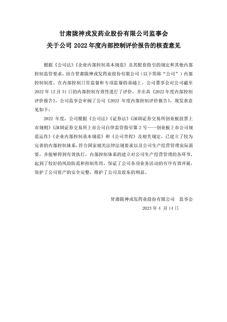 監(jiān)事會關(guān)于公司2022年度內(nèi)部控制評價報告的核查意見
