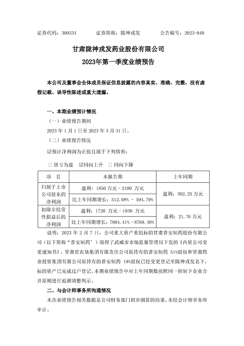 2023年第一季度業(yè)績(jī)預(yù)告