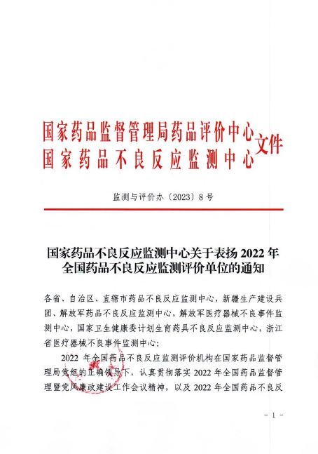 喜訊:普安制藥在《藥品管理法》、《藥物警戒質(zhì)量管理規(guī)范》發(fā)布實施以來,認真落實上市許可持有人主體責任,建立健全藥物警戒體系,積極開展藥品上市后安全性研究;在2022年履行主體責任方面表現(xiàn)突出,受到國家藥品不良反應(yīng)監(jiān)測中心通報表揚。