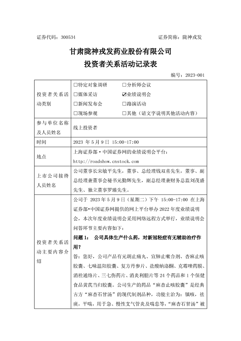 2022年度業(yè)績說明會(huì)投資者關(guān)系活動(dòng)記錄表