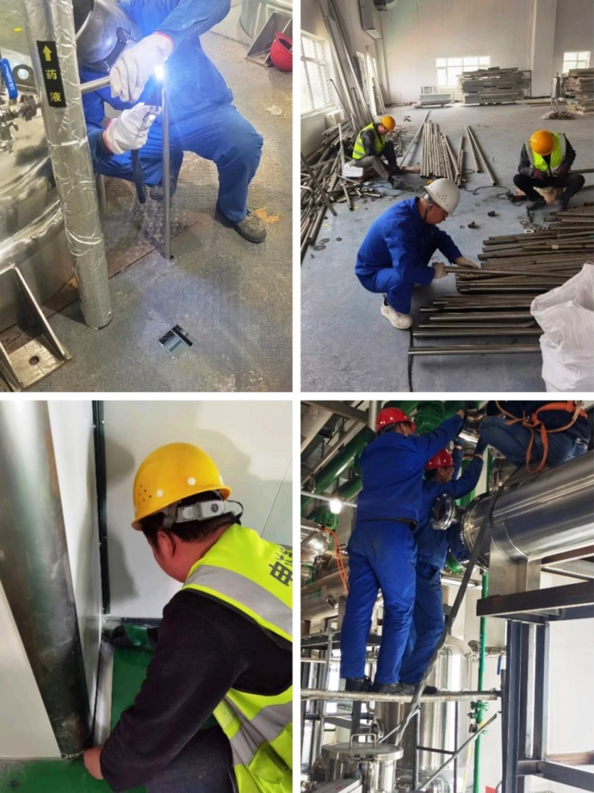 公司黨委書記、董事長(zhǎng)宋敏平每日深入改造一線,實(shí)地查看項(xiàng)目進(jìn)度,詳細(xì)了解項(xiàng)目改造時(shí)間節(jié)點(diǎn)和施工安全保障措施等情況,與項(xiàng)目相關(guān)人員就項(xiàng)目推進(jìn)事宜進(jìn)行深入交流,并為放棄休假、堅(jiān)守項(xiàng)目現(xiàn)場(chǎng)的人員送上節(jié)日的問候,對(duì)他們?cè)诩倨谄陂g搶工期、抓進(jìn)度表示感謝。提取車間項(xiàng)目改造人員與車間員工一同加班加點(diǎn)加油干,力爭(zhēng)在節(jié)假日完成管道保溫及項(xiàng)目收尾工作;污水改造項(xiàng)目設(shè)備、材料及人員進(jìn)場(chǎng);合劑車間施工人員各司其職、有條不紊、相互協(xié)作,對(duì)現(xiàn)場(chǎng)各工種做好安全技術(shù)交底,提前規(guī)劃現(xiàn)場(chǎng)施工平面圖,對(duì)支架布置、設(shè)備安裝及焊接質(zhì)量嚴(yán)格把控,以高質(zhì)量、高標(biāo)準(zhǔn)全面推進(jìn)項(xiàng)目施工按照既定計(jì)劃完成。