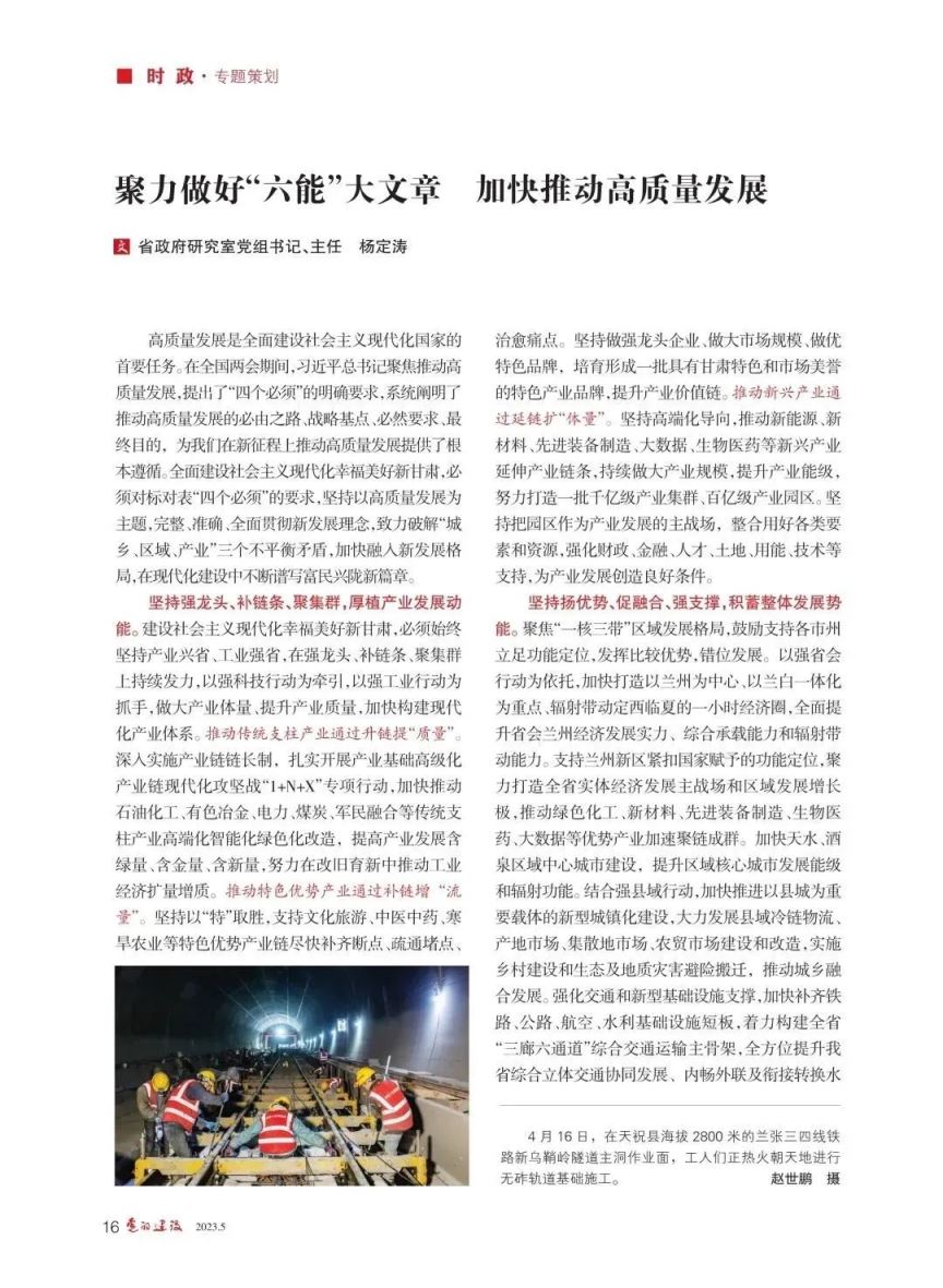 專題策劃 · 錨定高質(zhì)量 跑出甘肅“加速度” | 楊定濤:聚力做好“六能”大文章 加快推動高質(zhì)量發(fā)展