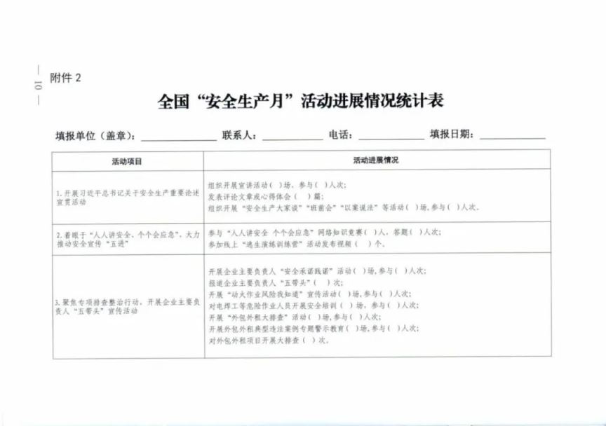 2.全國(guó)“安全生產(chǎn)月”活動(dòng)進(jìn)展情況統(tǒng)計(jì)表