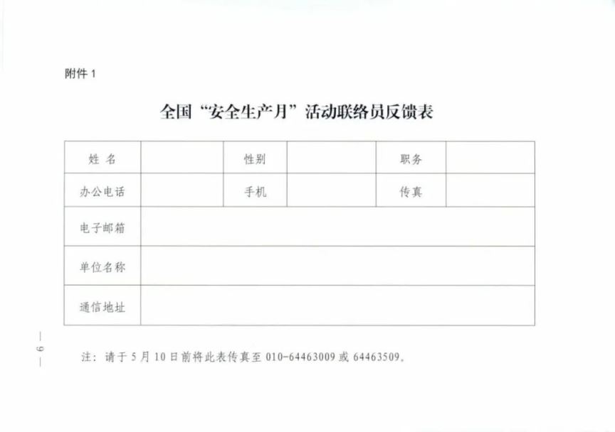 1.全國(guó)“安全生產(chǎn)月”活動(dòng)聯(lián)絡(luò)員反饋表