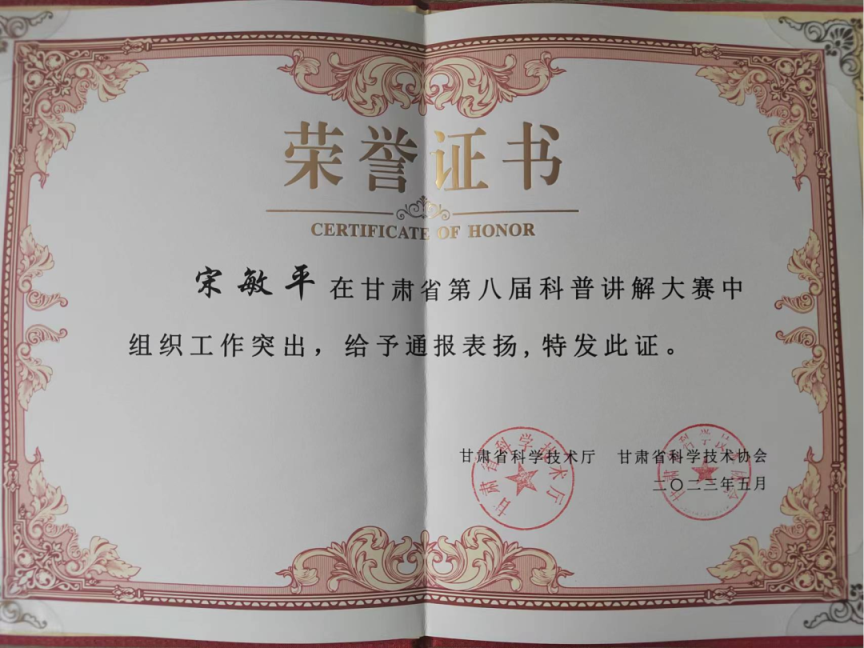 【熱烈祝賀】甘肅藥業(yè)集團(tuán)隴神戎發(fā)董事長宋敏平榮膺“甘肅省第八屆科普講解大賽”優(yōu)秀組織獎