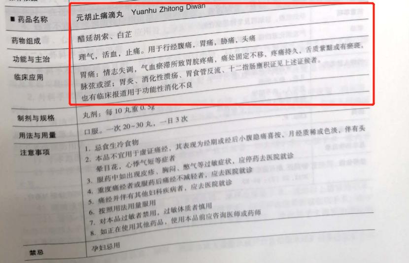 《臨床路徑治療藥物釋義-消化病分冊》元胡止痛滴丸收載內(nèi)容