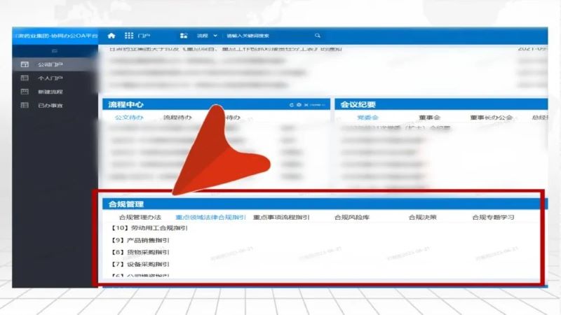 為進一步推動集團公司合規(guī)管理體系建設,加強合規(guī)管理工作的便捷性、集約性,集團公司法律事務部結合日常OA辦公平臺,創(chuàng)建“合規(guī)管理信息綜合平臺”,該平臺共設置“合規(guī)管理辦法”、“重點領域法律合規(guī)指引”、“重點事項合規(guī)流程指引”、“合規(guī)風險庫”、“合規(guī)決策”、“合規(guī)專題學習”六大版塊,集檢索、指引與學習三大功能為一體,集團公司所有OA用戶通過電腦登錄后可在首頁直接使用該平臺功能。