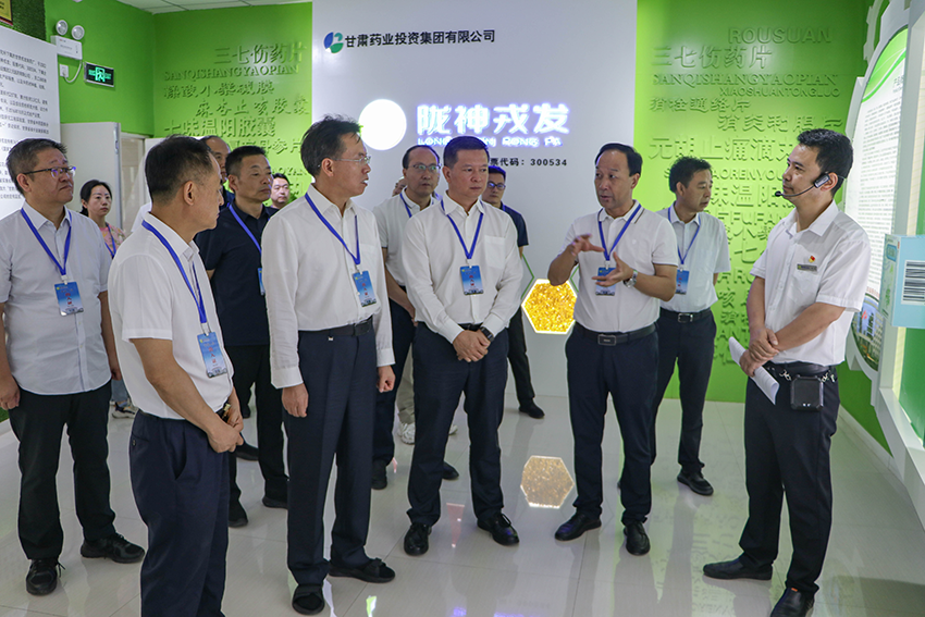 贠建民副主席一行首先在企業(yè)產(chǎn)品展廳進(jìn)行參觀,了解藥業(yè)集團(tuán)和隴神戎發(fā)的發(fā)展歷程、企業(yè)改制上市和完成普安制藥并購(gòu)后業(yè)績(jī)?nèi)嫣嵘惹闆r,以及公司元胡止痛滴丸、宣肺止嗽合劑、鞣酸小檗堿膜、七味溫陽(yáng)膠囊等全國(guó)獨(dú)家品種生產(chǎn)研發(fā)情況。隨后前往滴丸車間和合劑車間生產(chǎn)線現(xiàn)場(chǎng)觀摩,直觀了解產(chǎn)品的生產(chǎn)過程,最后前往公司七樓質(zhì)檢研發(fā)中心,現(xiàn)場(chǎng)了解公司科研力量、產(chǎn)品研發(fā)、質(zhì)量檢測(cè)等情況。