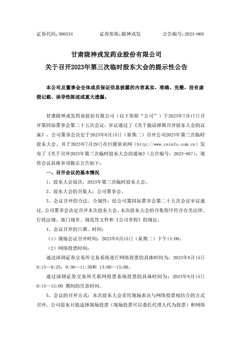 關(guān)于召開2023年第三次臨時股東大會的提示性公告