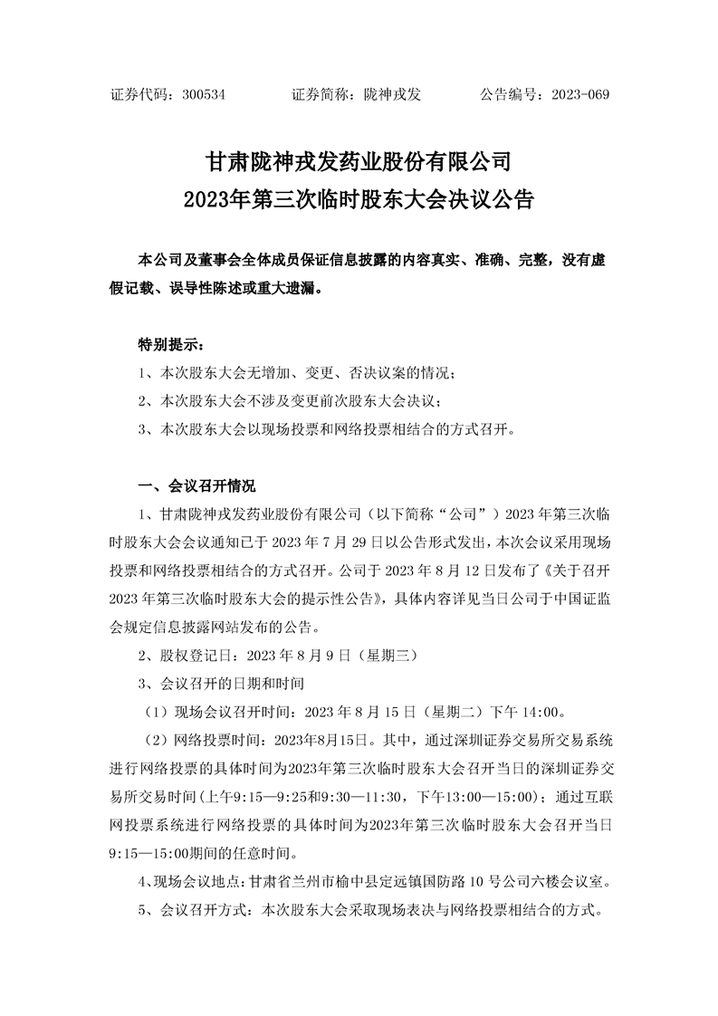 2023年第三次臨時(shí)股東大會(huì)決議公告