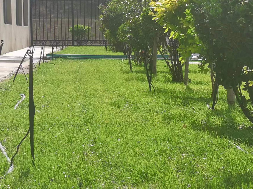這半年來,公司組織人員,先對地面進行了一次次清理,撿拾掉雜草和較大的石塊,換掉板結(jié)的舊土,填上疏松肥沃的新土,再用水灌溉至澆透。等到土壤微干松散,用鐵鍬對土地做了一次深翻,使土地軟化并平地,均勻的撒上種子后,用耙子抹平,最后還要覆蓋上膜,布置好澆灌系統(tǒng)。整個工作流程說起來簡單,但都實實在在地傾注了每一位工作人員的心血和汗水。