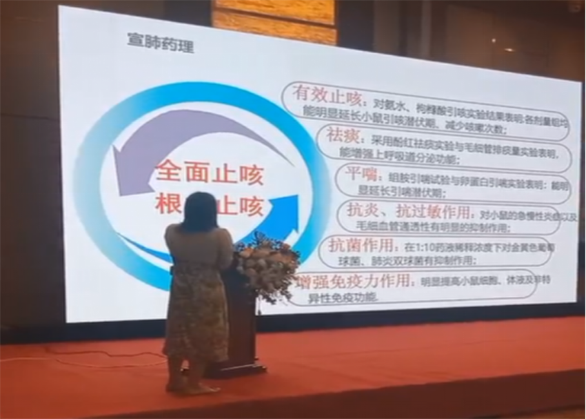 濟南華宸科技服務(wù)有限公司學(xué)術(shù)經(jīng)理講到宣肺止嗽合劑是甘肅普安制藥生產(chǎn)的獨家品種,在明代宮廷方“止嗽散”基礎(chǔ)上,經(jīng)多位名老中醫(yī)加減化裁的而成的經(jīng)典方劑。由荊芥、前胡、桔梗、蜜百部、蜜紫菀、陳皮、魚腥草、薄荷、蜜罌粟殼、蜜甘草十味中藥材制成。功能主治:疏風(fēng)宣肺、止咳化痰,用于咳嗽屬風(fēng)邪犯肺證,癥見咳嗽、咽癢、鼻塞流涕、惡寒發(fā)熱、咯痰等。