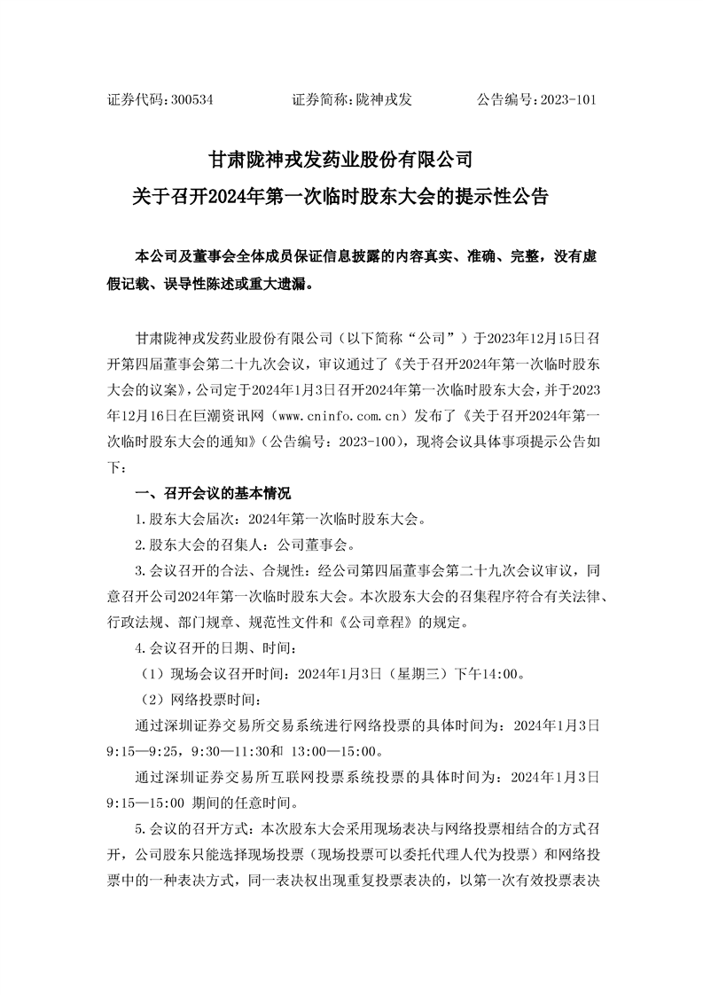 關(guān)于召開(kāi)2024年第一次臨時(shí)股東大會(huì)的提示性公告