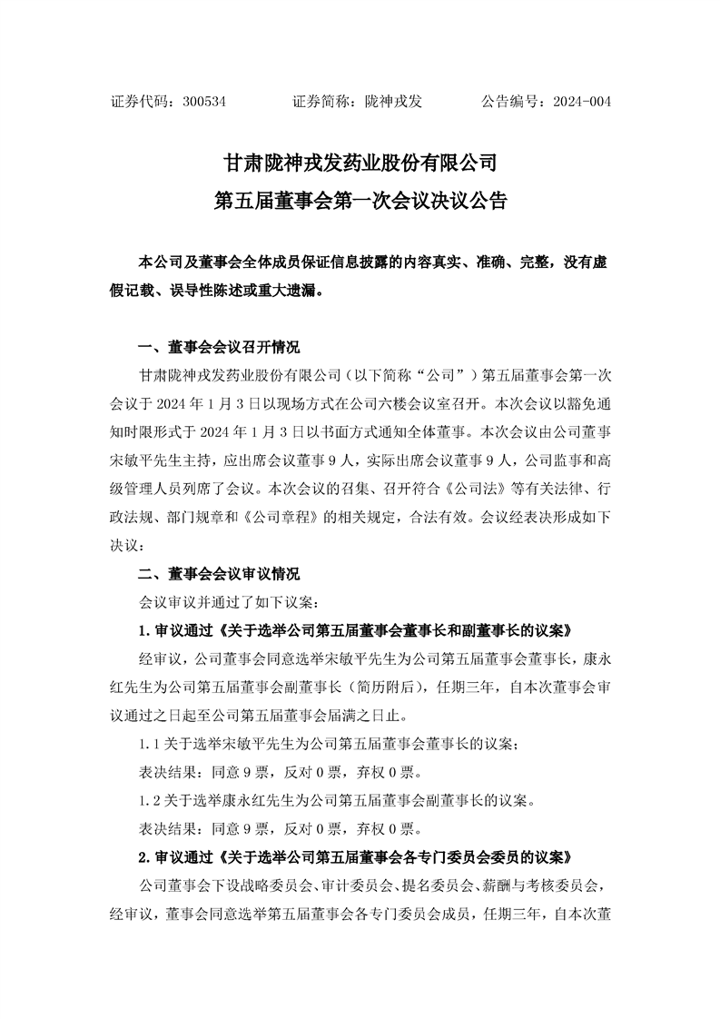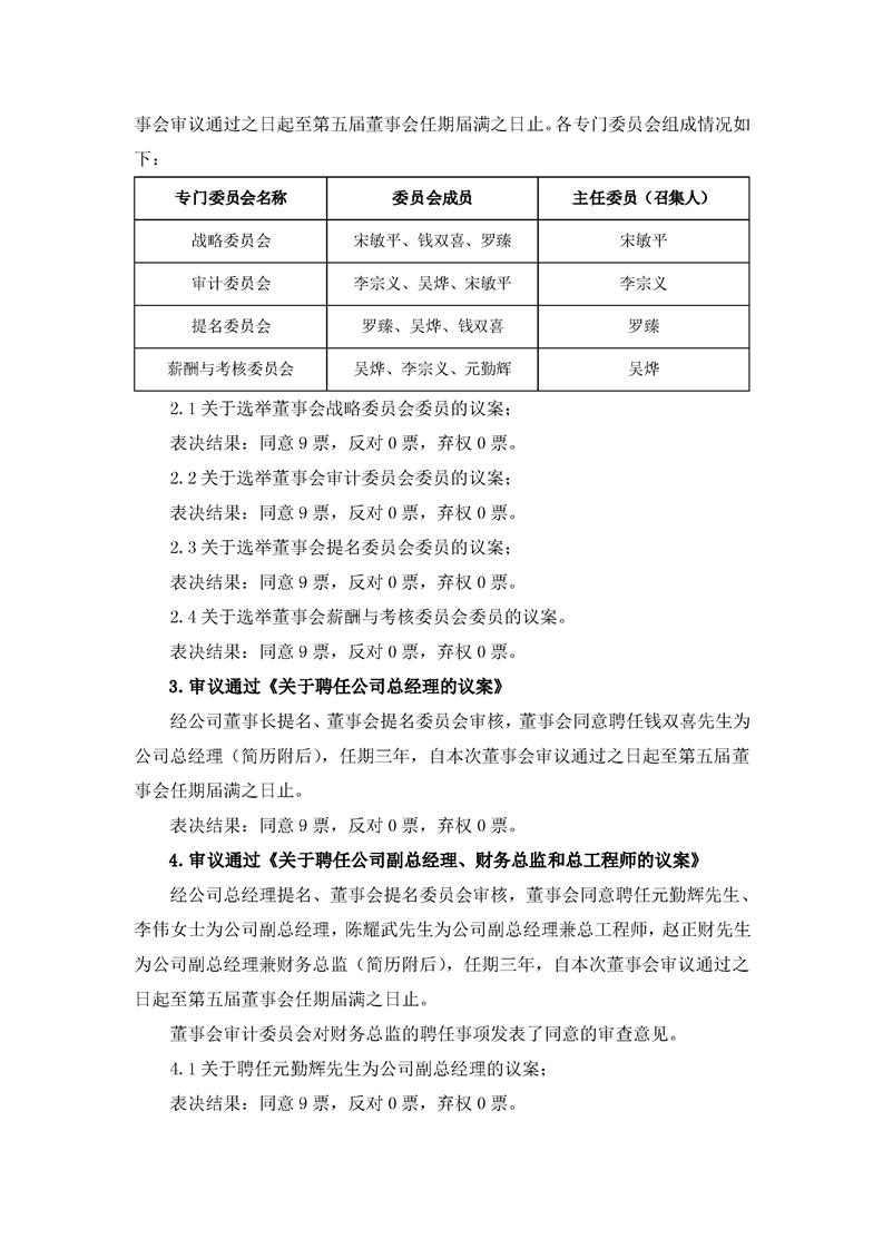第五屆董事會(huì)第一次會(huì)議決議公告