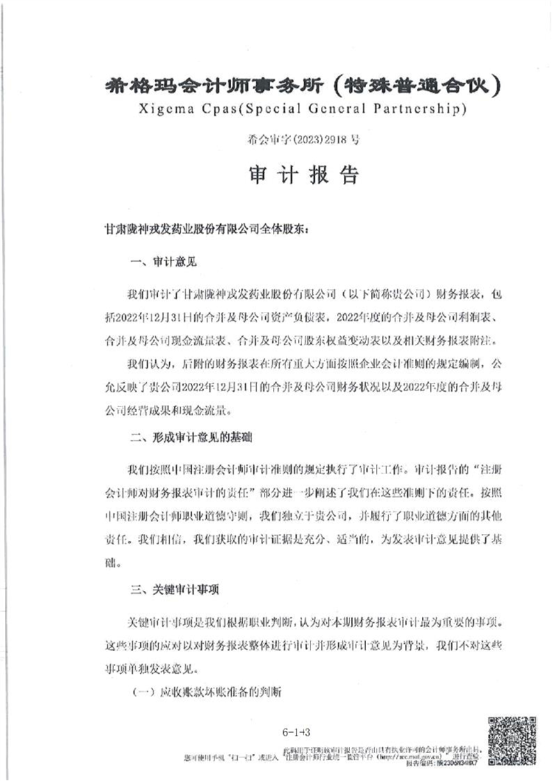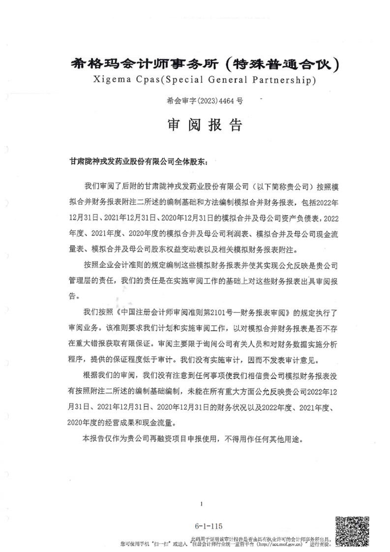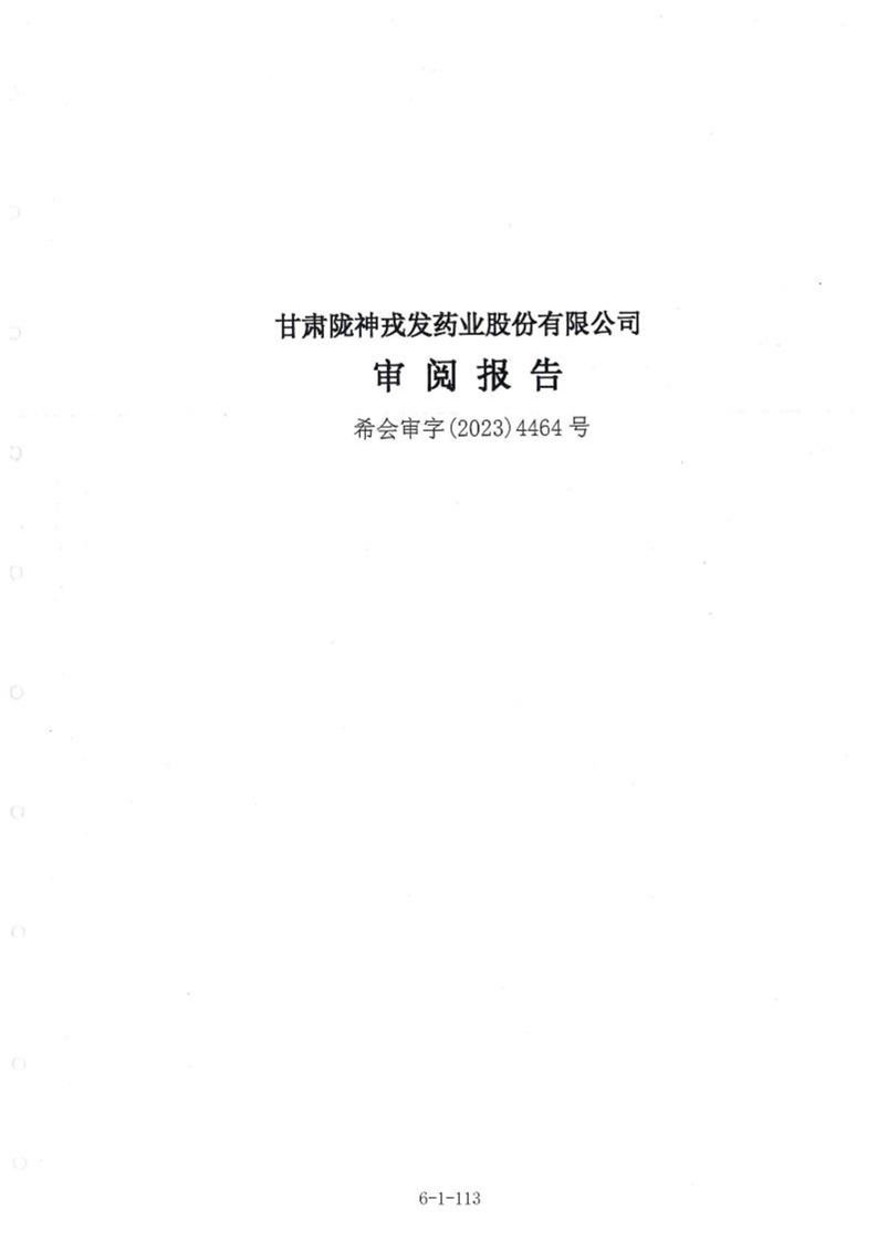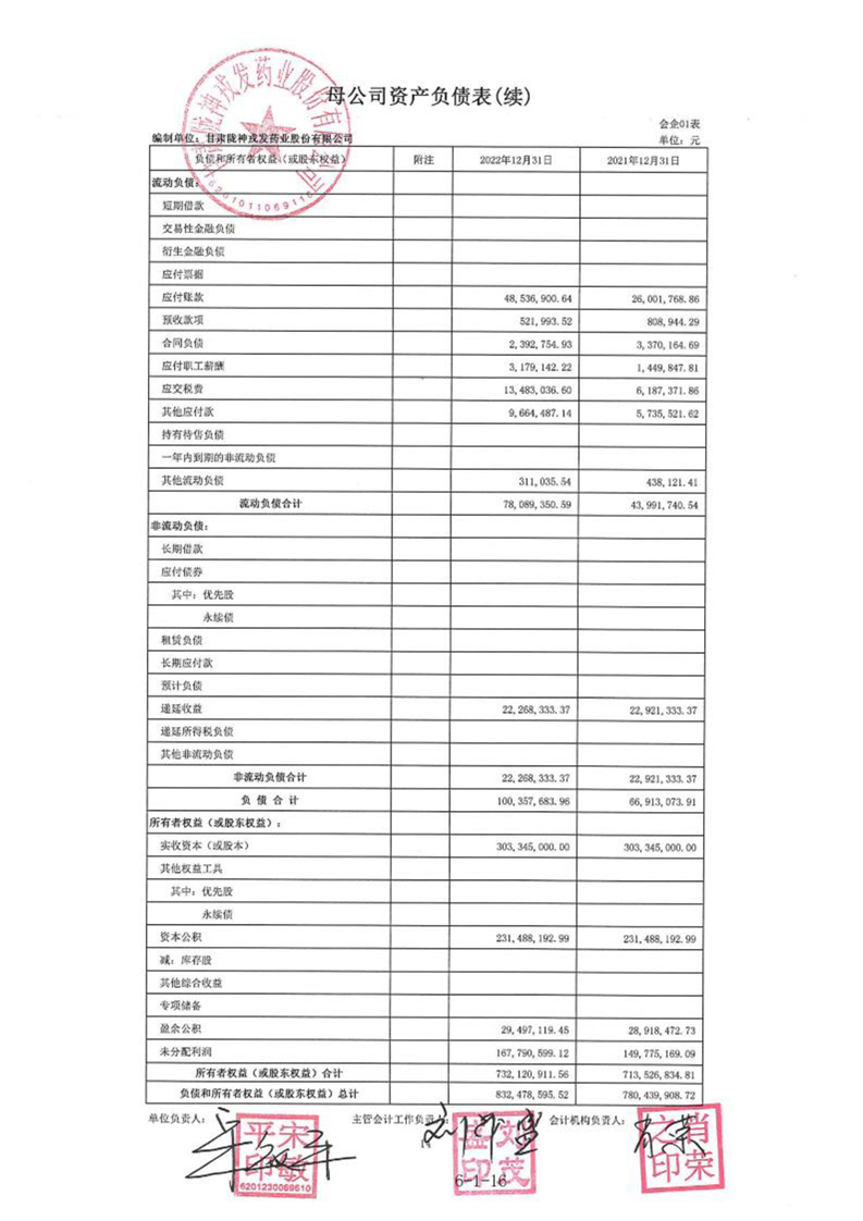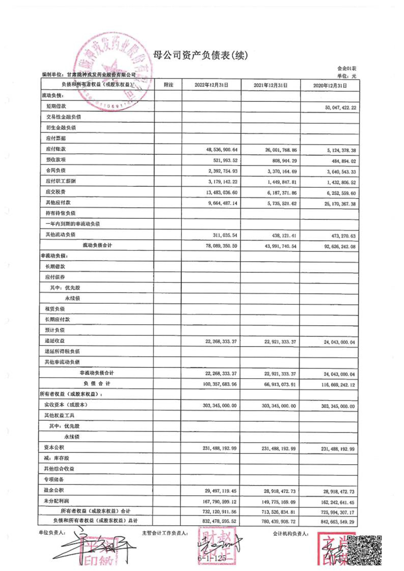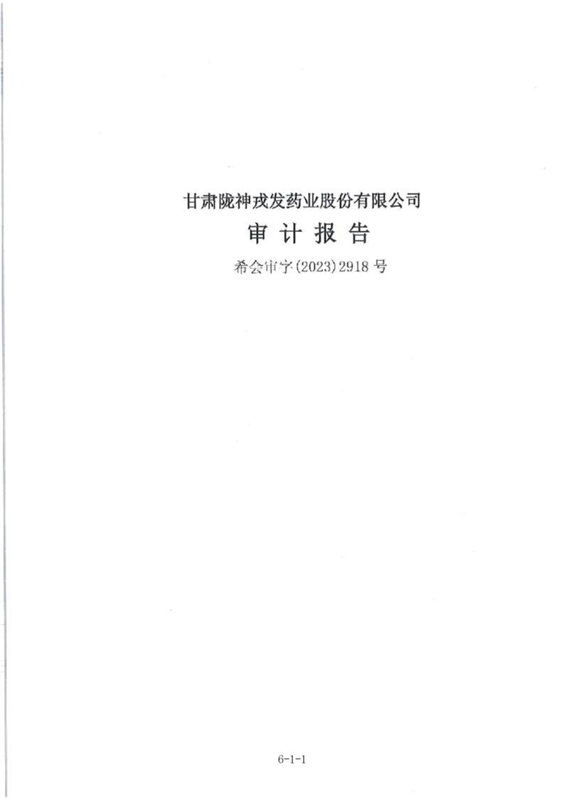 甘肅隴神戎發(fā)藥業(yè)股份有限公司最近一年的財務報告及其審計報告以及最近一期的財務報告