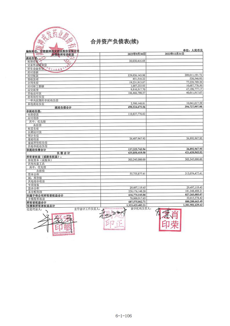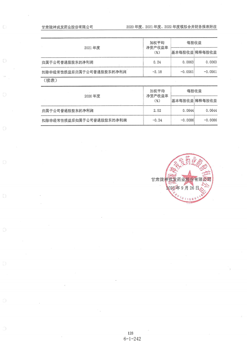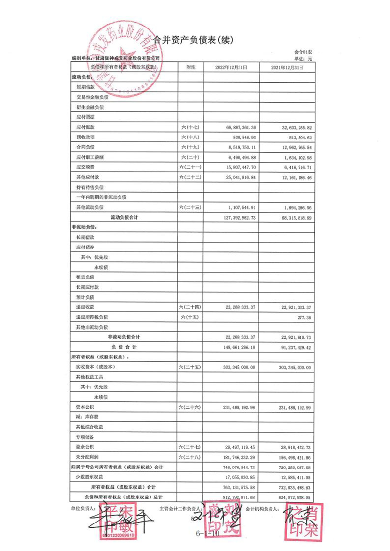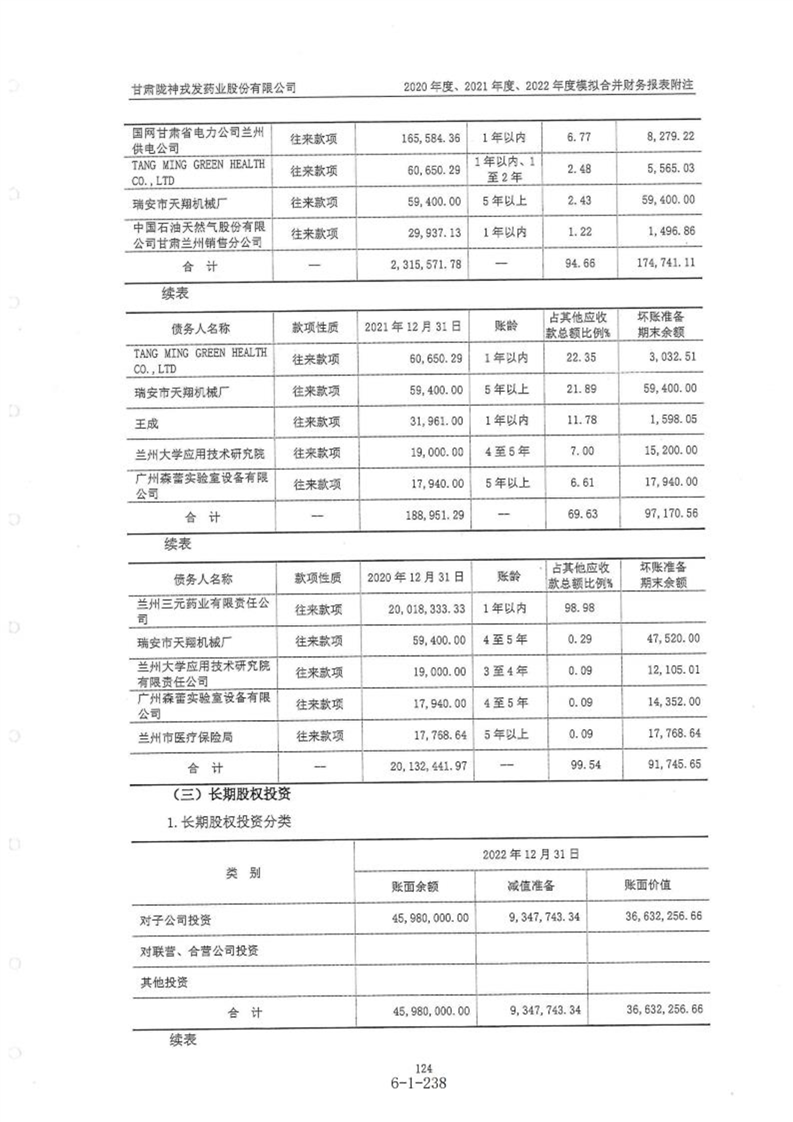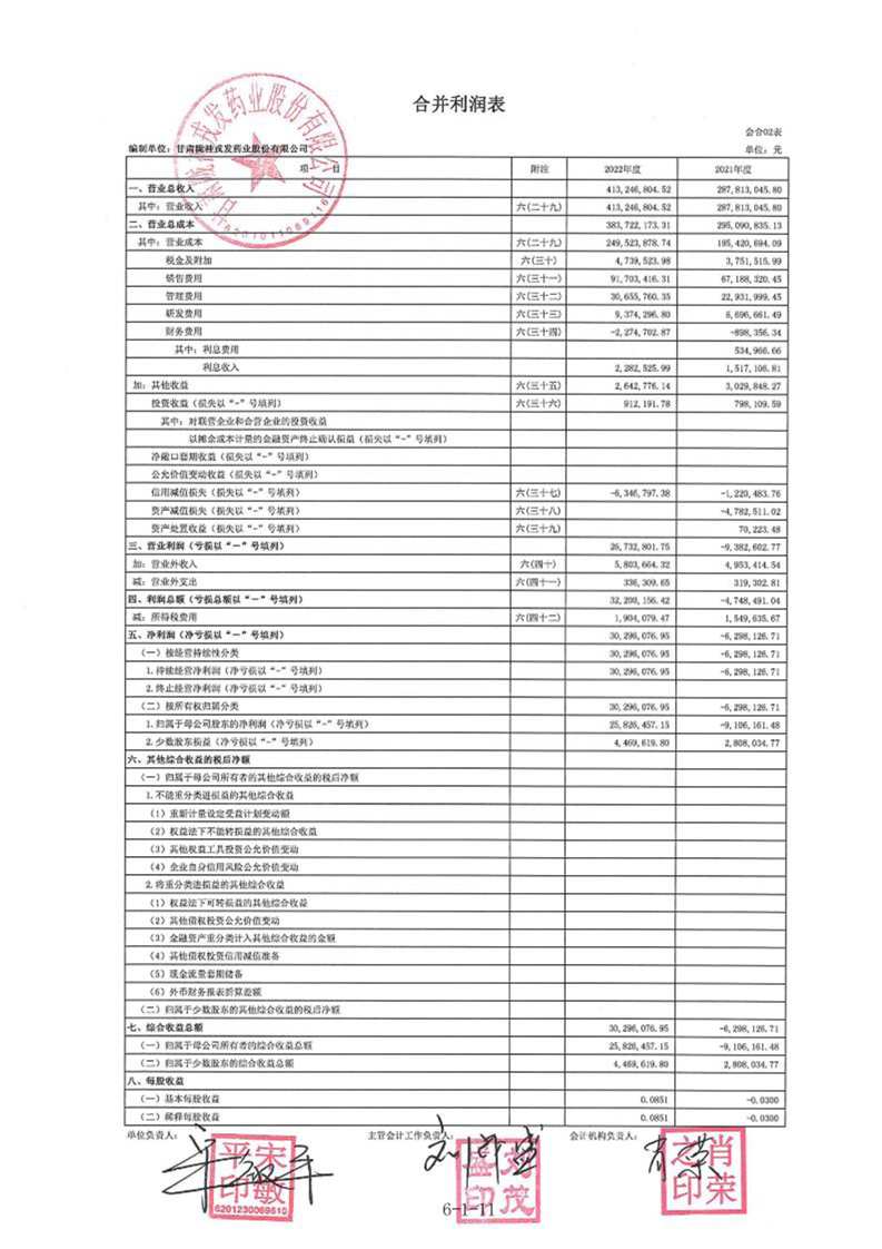 甘肅隴神戎發(fā)藥業(yè)股份有限公司最近一年的財務報告及其審計報告以及最近一期的財務報告