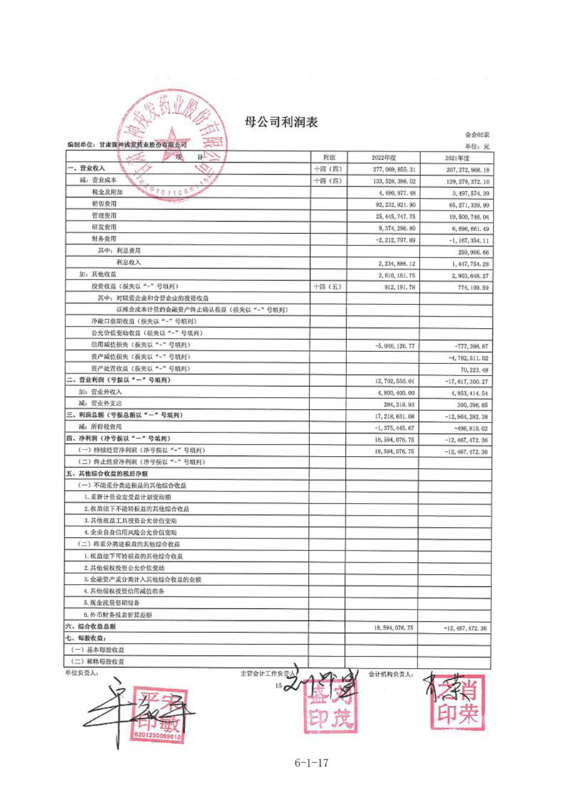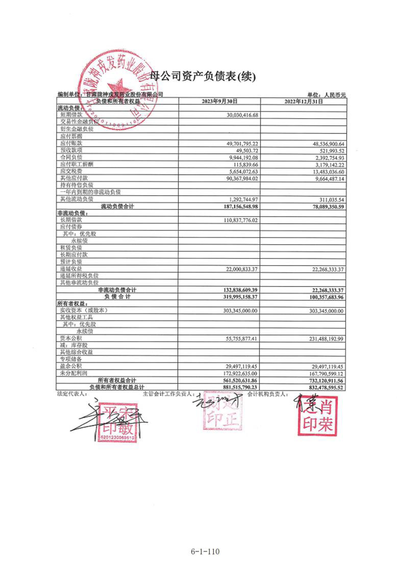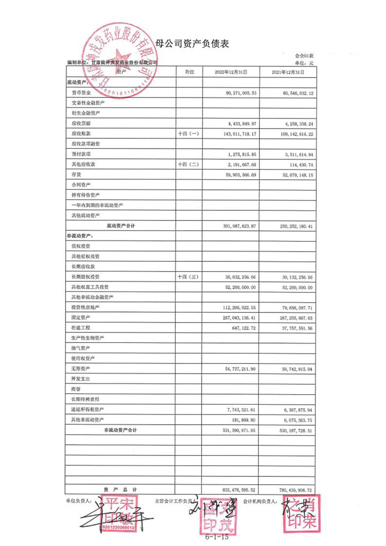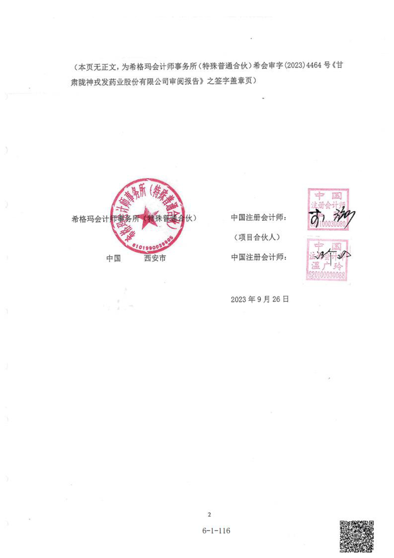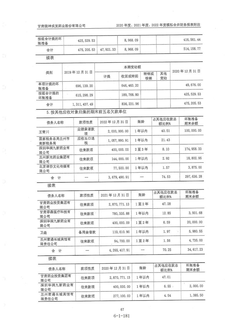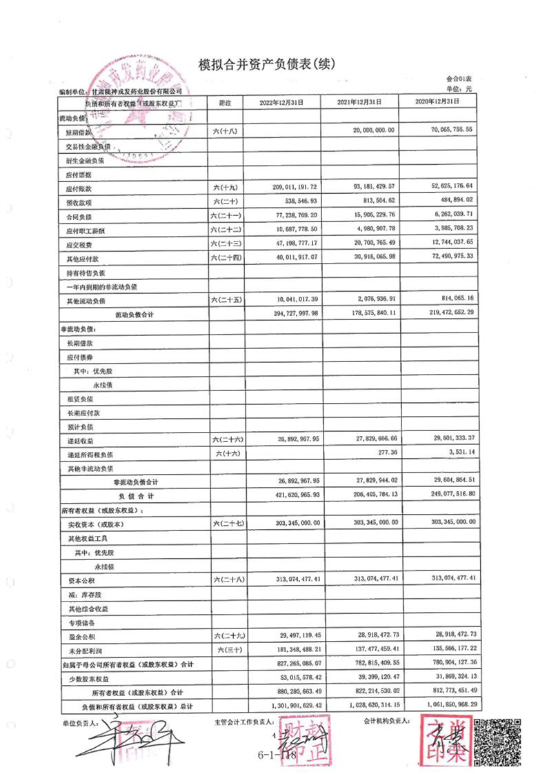 甘肅隴神戎發(fā)藥業(yè)股份有限公司最近一年的財務報告及其審計報告以及最近一期的財務報告