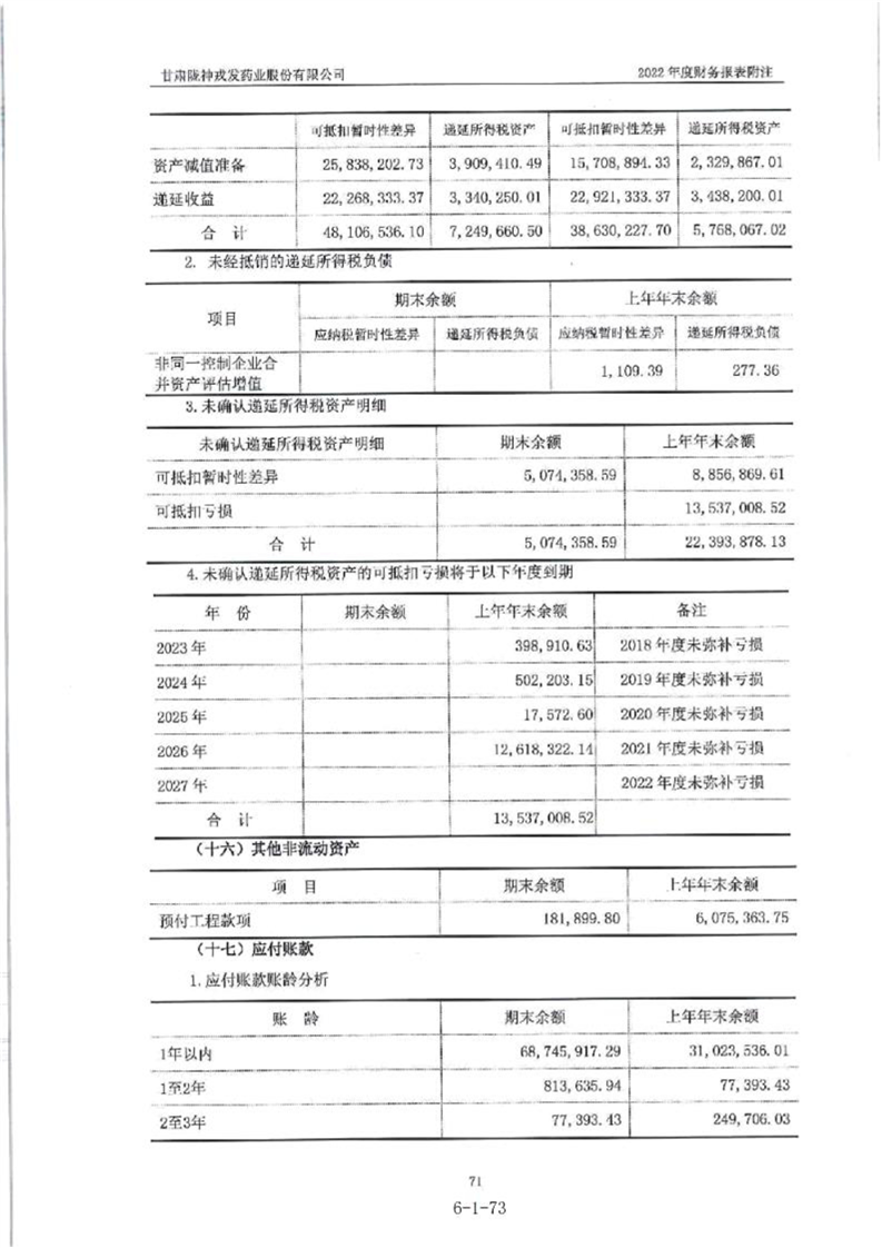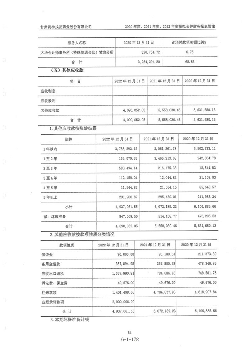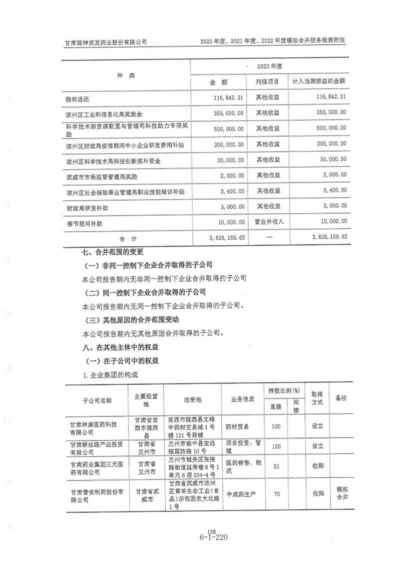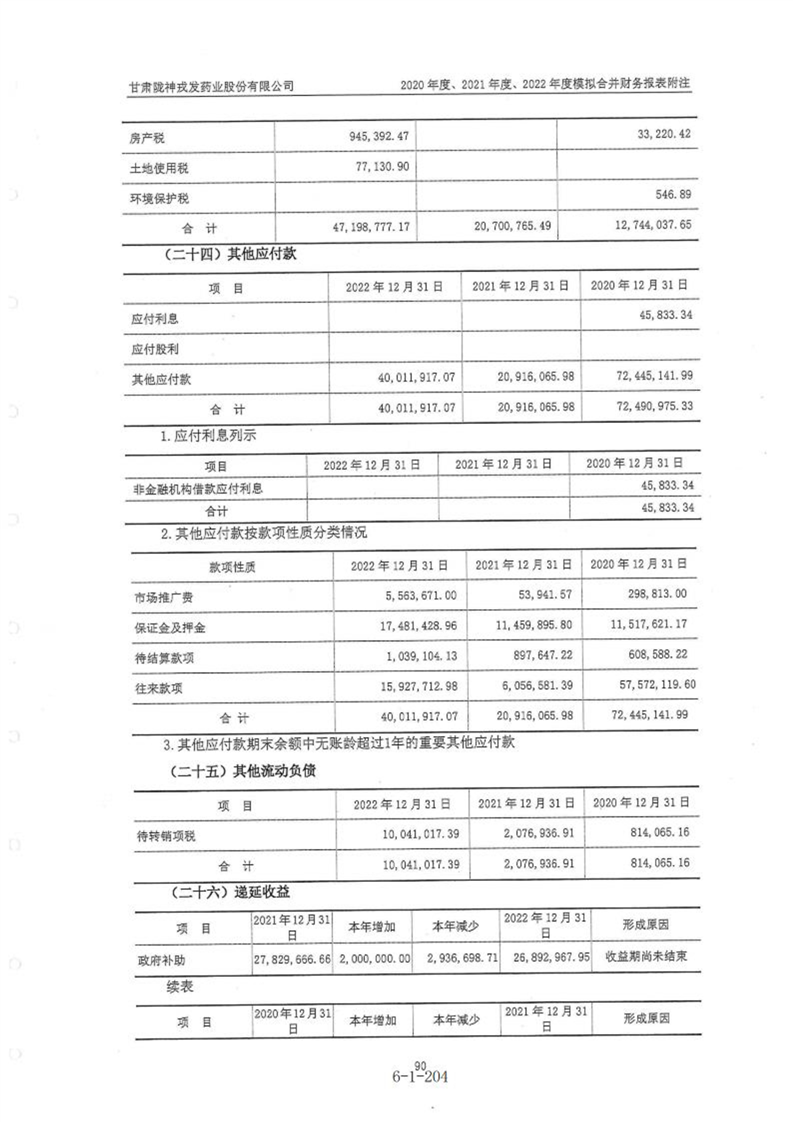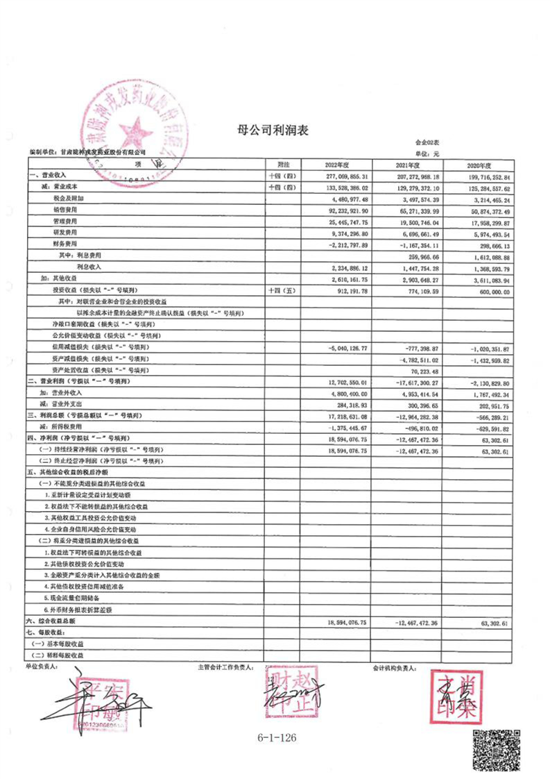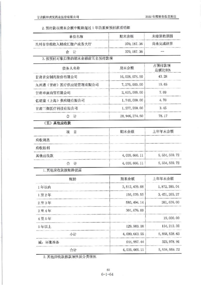 甘肅隴神戎發(fā)藥業(yè)股份有限公司最近一年的財務報告及其審計報告以及最近一期的財務報告