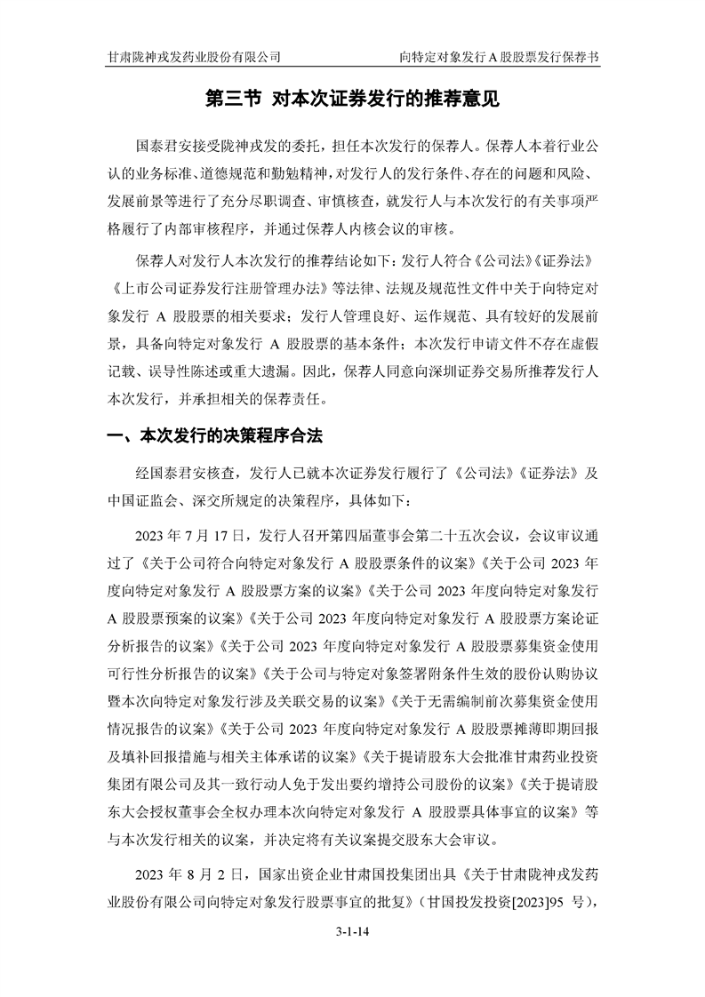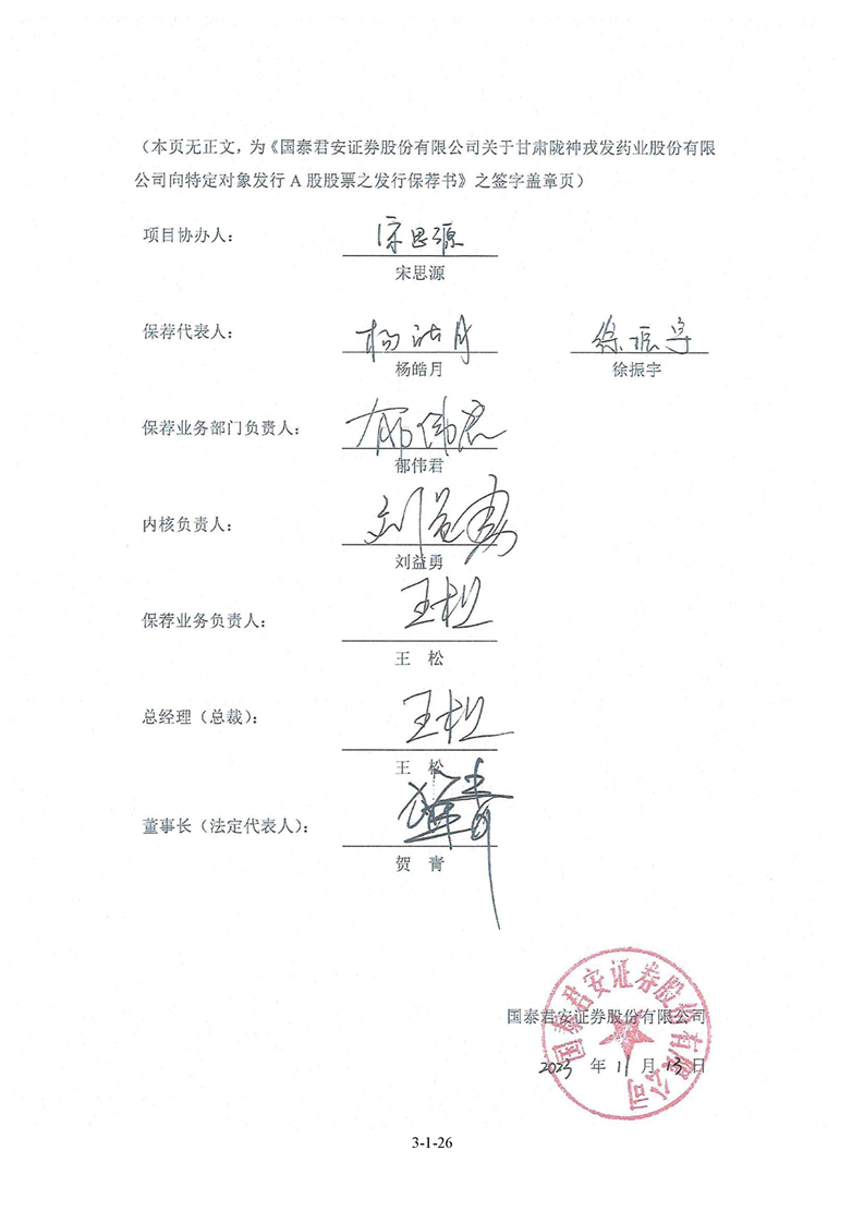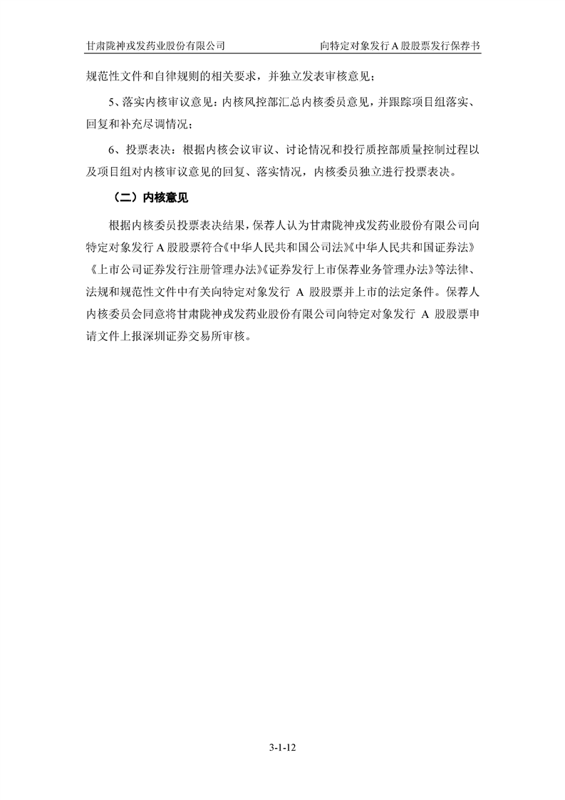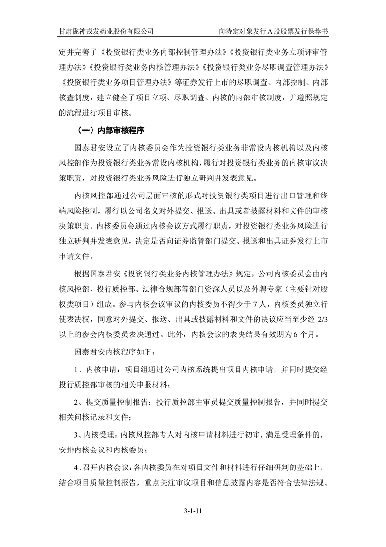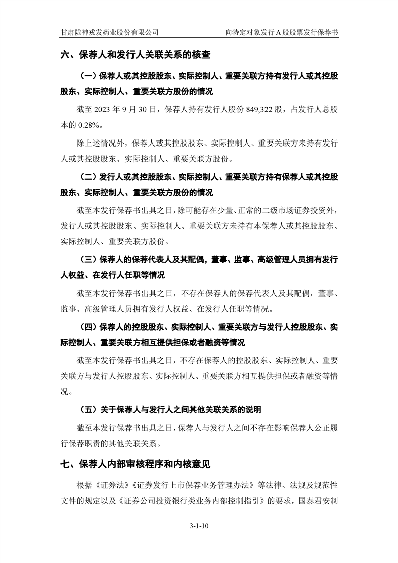 國泰君安證券股份有限公司關(guān)于甘肅隴神戎發(fā)藥業(yè)股份有限公司向特定對(duì)象發(fā)行A股股票之發(fā)行保薦書