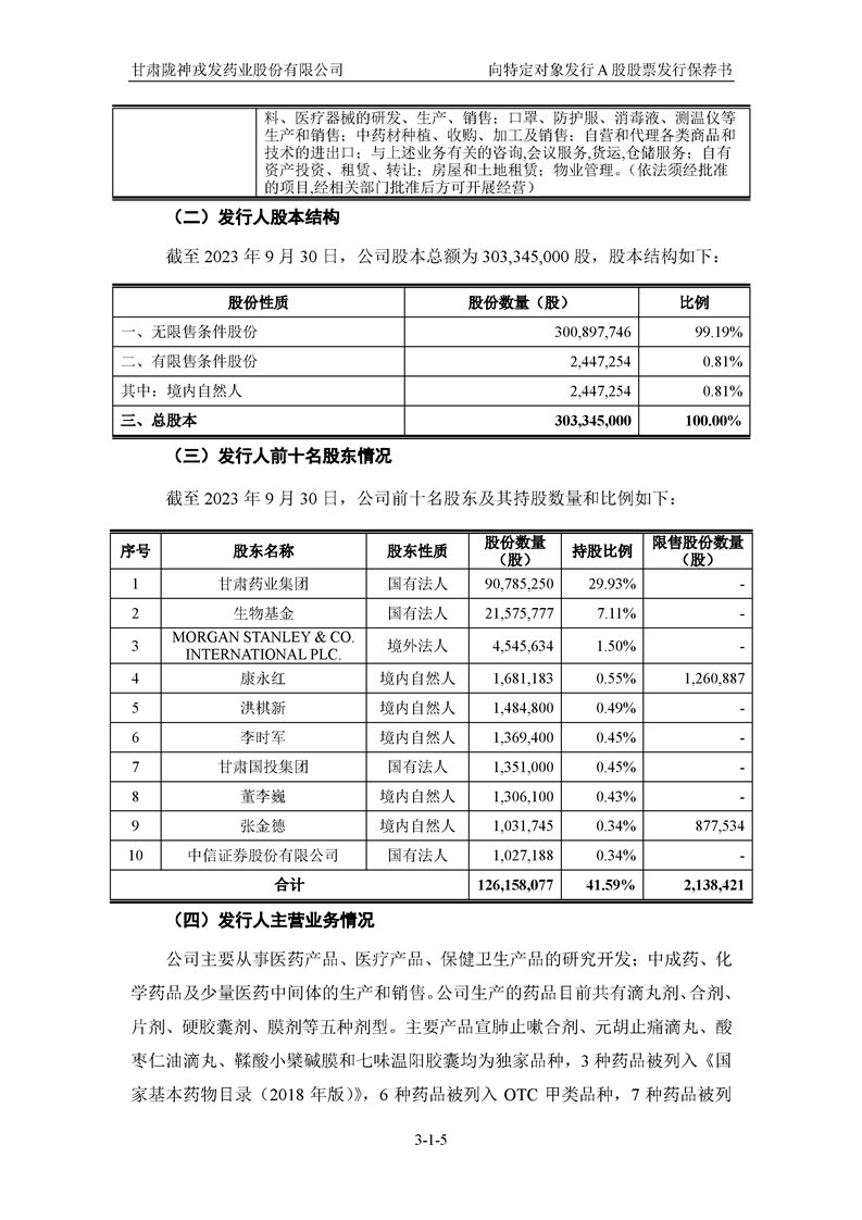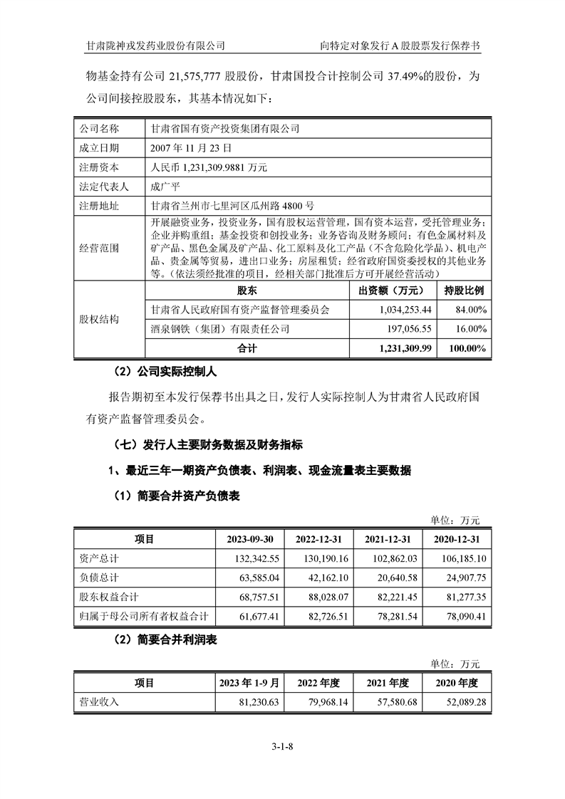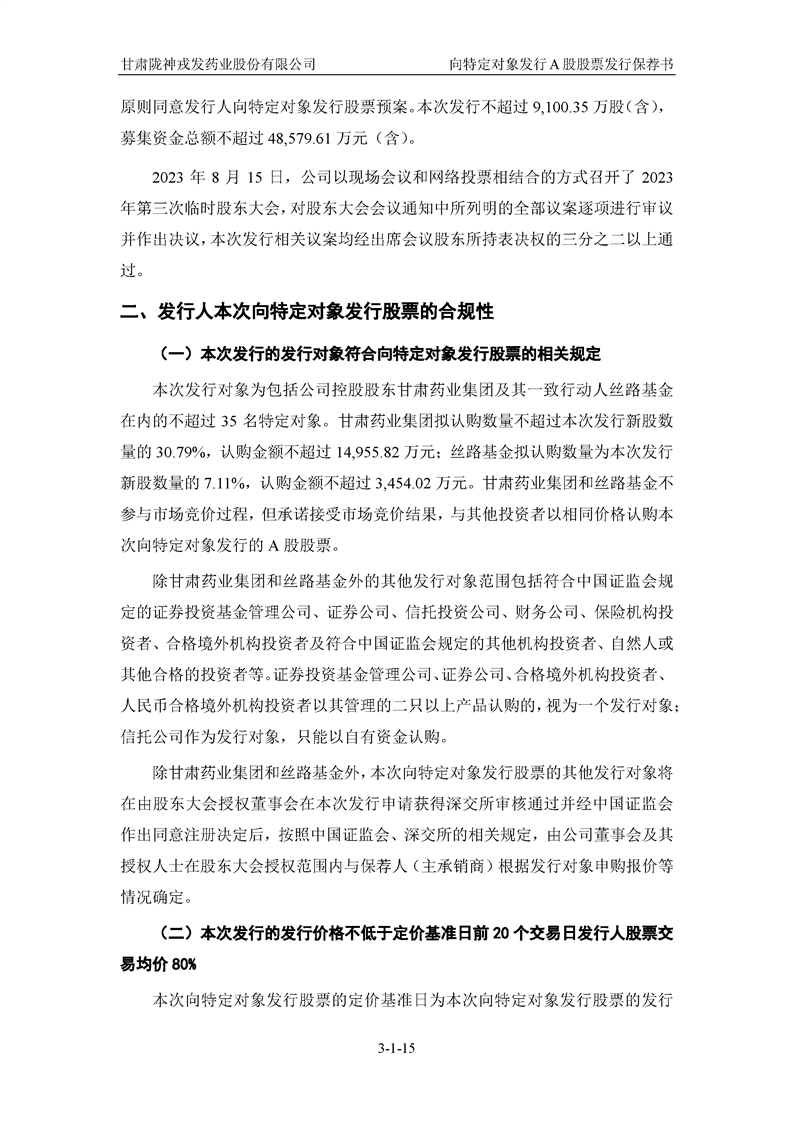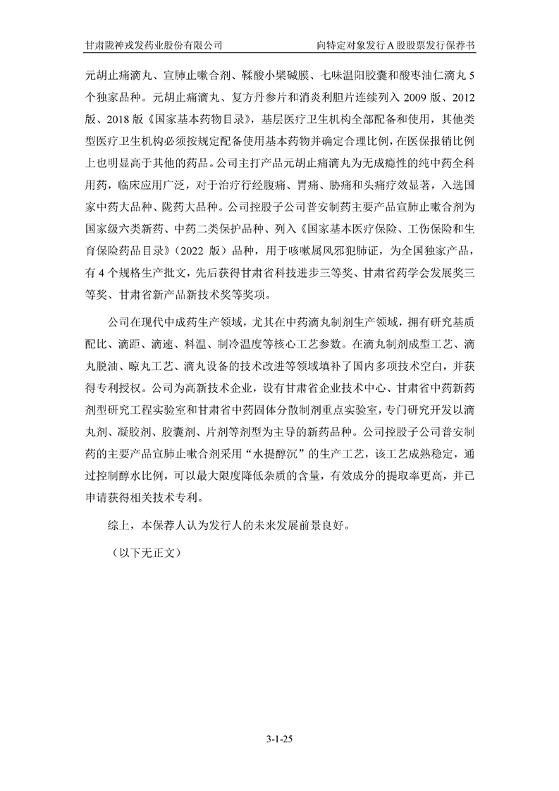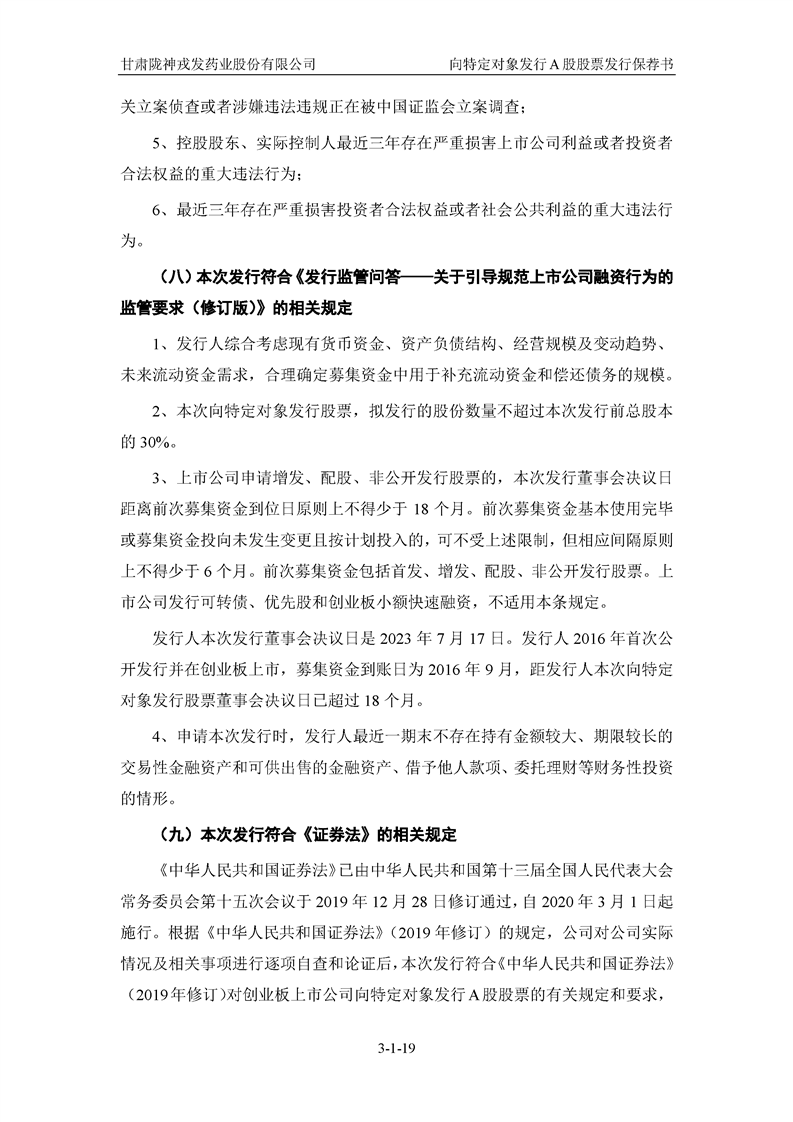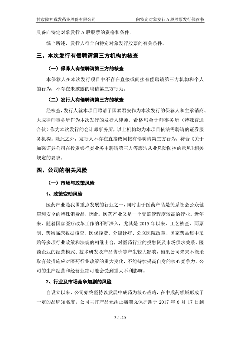 國泰君安證券股份有限公司關(guān)于甘肅隴神戎發(fā)藥業(yè)股份有限公司向特定對(duì)象發(fā)行A股股票之發(fā)行保薦書