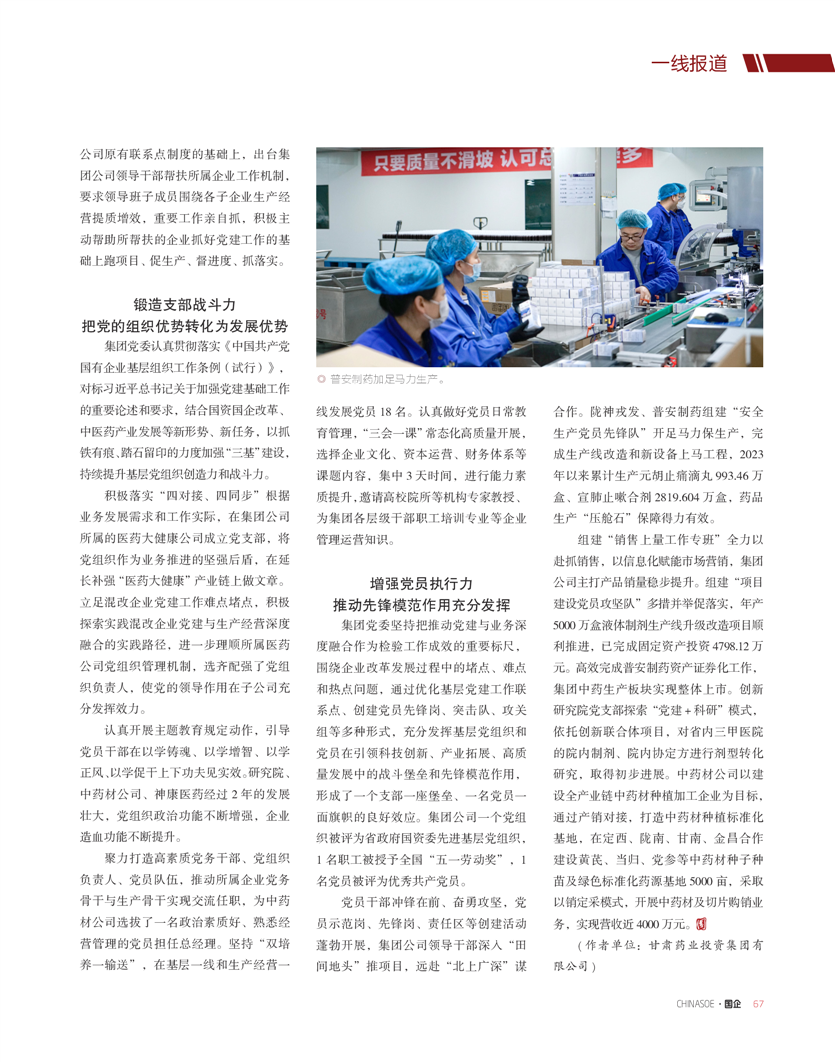 《國(guó)企》雜志:甘肅藥業(yè)集團(tuán)“三力齊發(fā)”推進(jìn)黨建工作與生產(chǎn)經(jīng)營(yíng)互促共進(jìn)