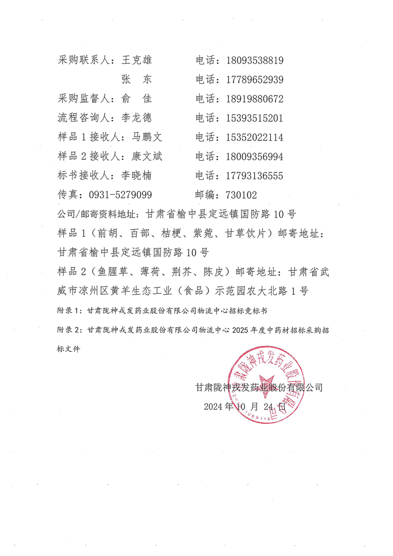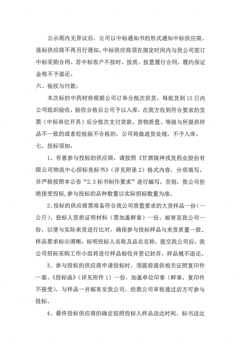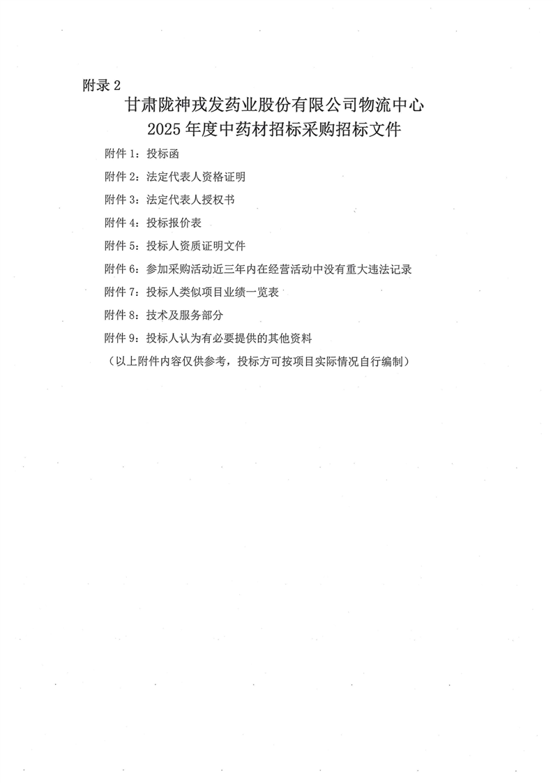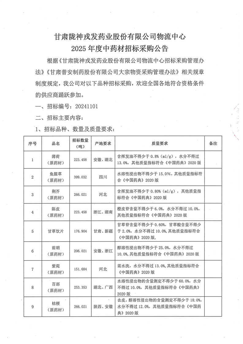 甘肅隴神戎發(fā)藥業(yè)股份有限公司物流中心2025 年度中藥材招標(biāo)采購(gòu)公告