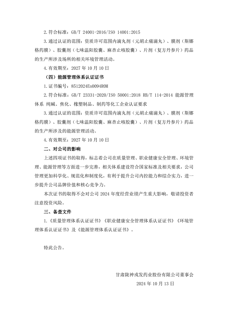 關(guān)于公司獲得質(zhì)量管理體系、職業(yè)健康安全管理體系、環(huán)境管理體系、能源管理體系認(rèn)證證書的公告