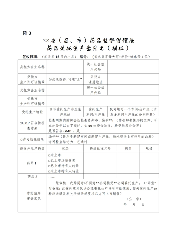 請于2024年12月10日前,將有關(guān)意見按照《意見反饋表》格式要求反饋至電子郵箱yaopinjianguan-2@nmpa.gov.cn,郵件標(biāo)題請注明“受托生產(chǎn)監(jiān)管公告意見反饋”。