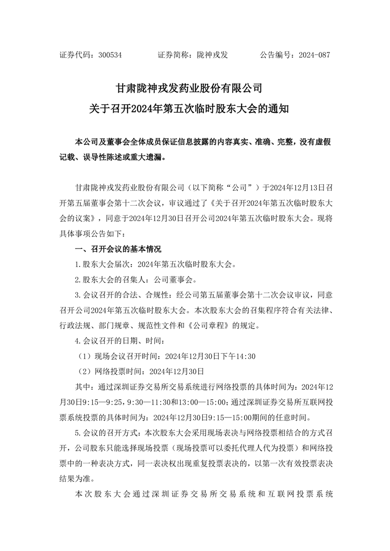 關(guān)于召開2024年第五次臨時(shí)股東大會(huì)的通知