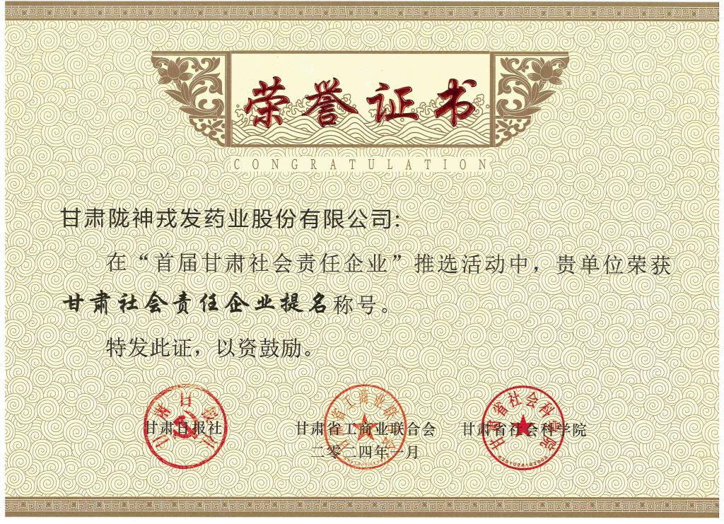 隴神戎發(fā)黨委書記、董事長宋敏平榮獲“甘肅社會責(zé)任企業(yè)家”稱號;隴神戎發(fā)榮獲“甘肅社會責(zé)任企業(yè)提名”稱號