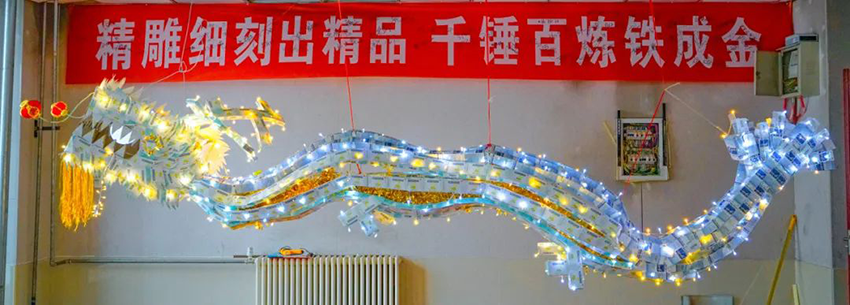 自制彩燈有員工個人創(chuàng)作,也有團隊合作完成;有利用廢舊藥盒制作的祥龍和傳統(tǒng)燈籠,也有利用一次筷子完成的“萬家燈火”,新穎獨特、各有特色;顒庸彩盏絺人或團隊制做的彩燈42盞。最終,由安全環(huán)保部和工會辦公室合作完成的“宣元龍”取得了本次比賽的一等獎。