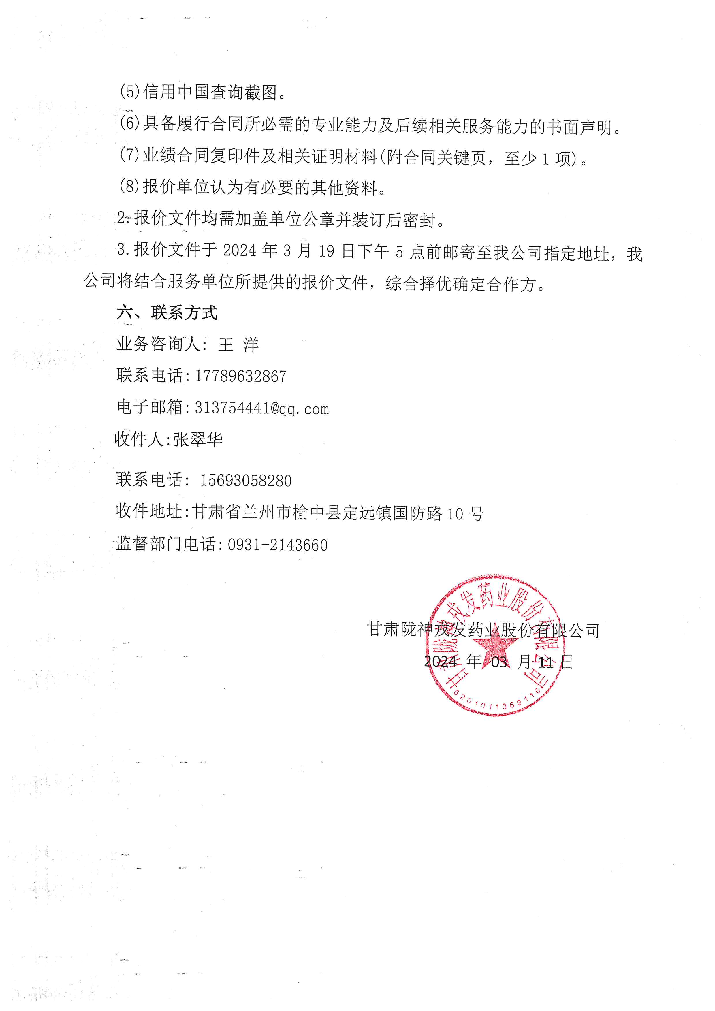 甘肅隴神戎發(fā)藥業(yè)股份有限公司污水在線監(jiān)測系統(tǒng)維保服務(wù)詢比采購公告