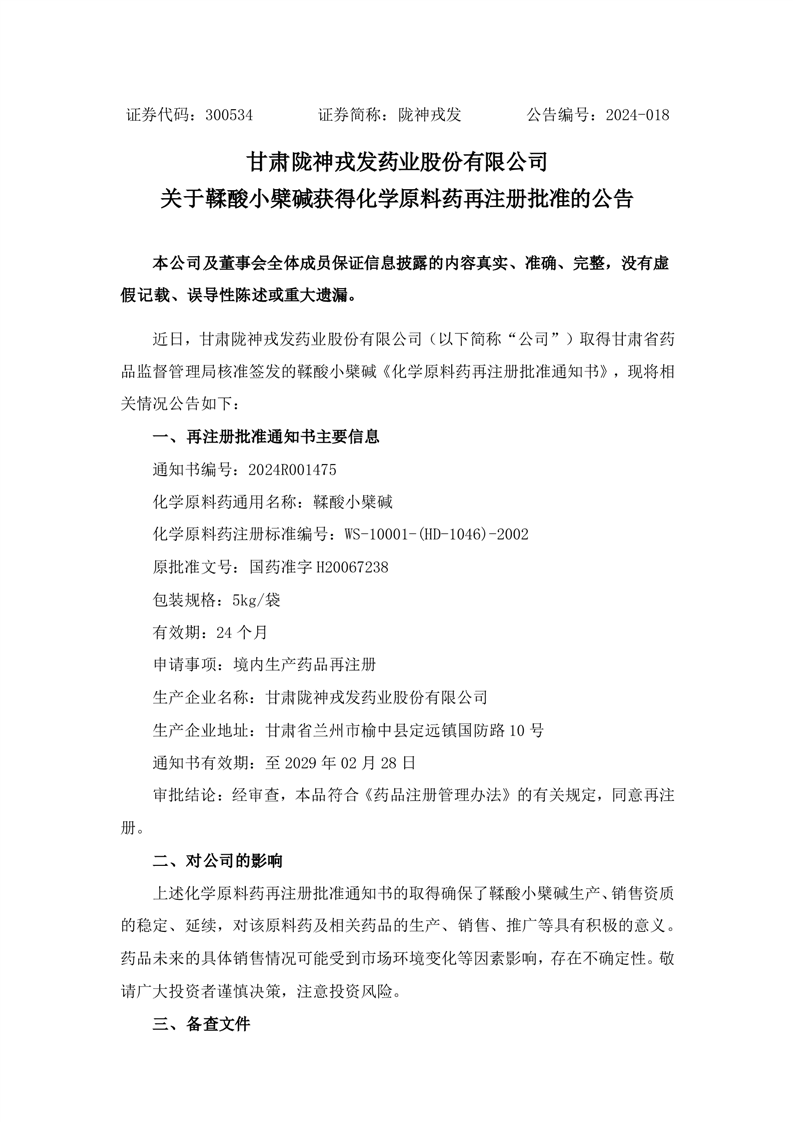 關(guān)于鞣酸小檗堿獲得化學(xué)原料藥再注冊(cè)批準(zhǔn)的公告