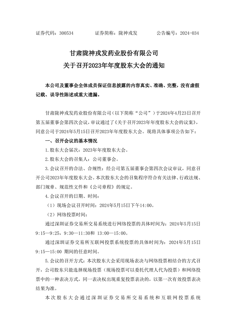 關(guān)于召開2023年年度股東大會(huì)的通知