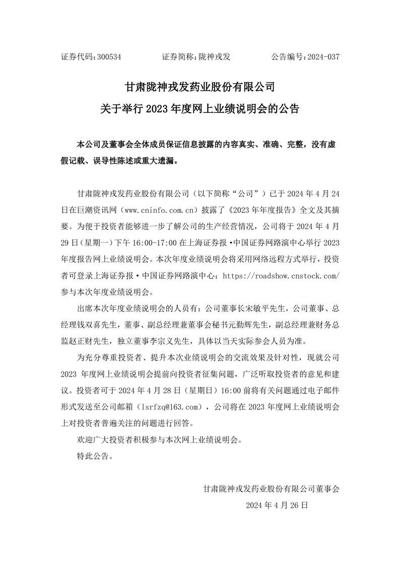 關(guān)于舉行2023年度網(wǎng)上業(yè)績(jī)說(shuō)明會(huì)的公告