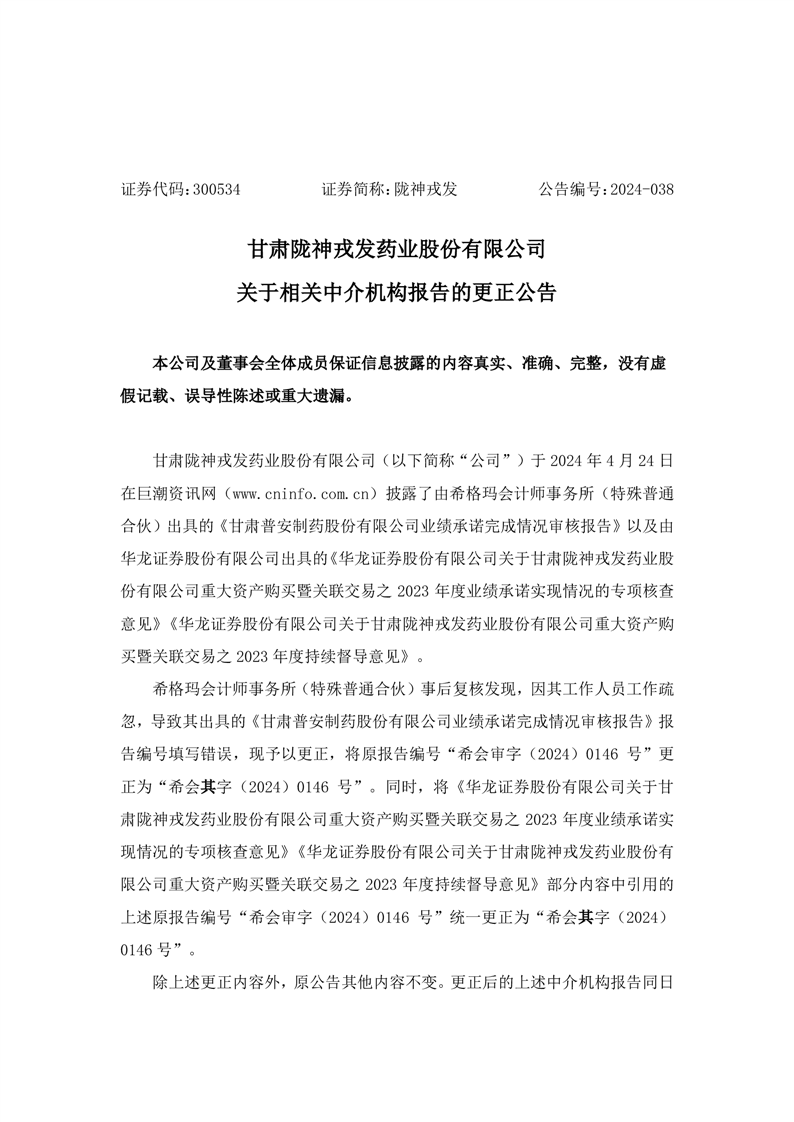 關(guān)于相關(guān)中介機(jī)構(gòu)報(bào)告的更正公告