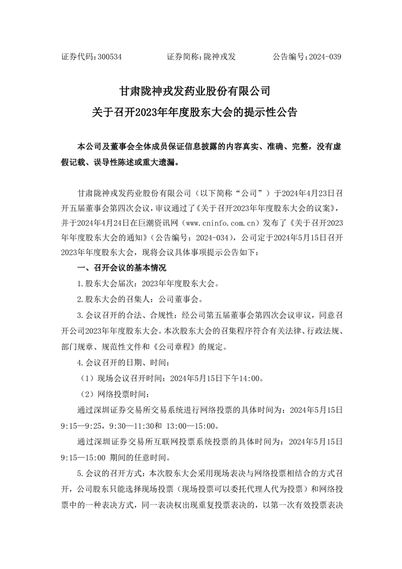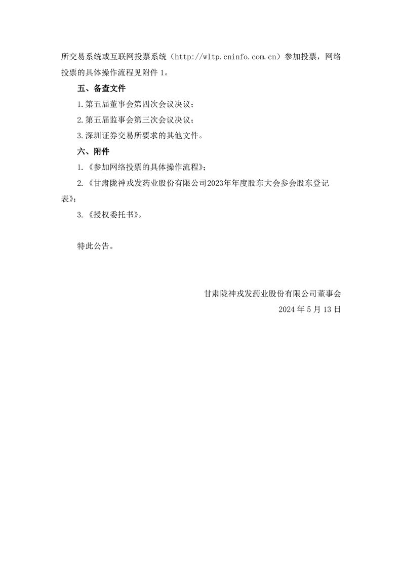 關(guān)于召開2023年年度股東大會(huì)的提示性公告