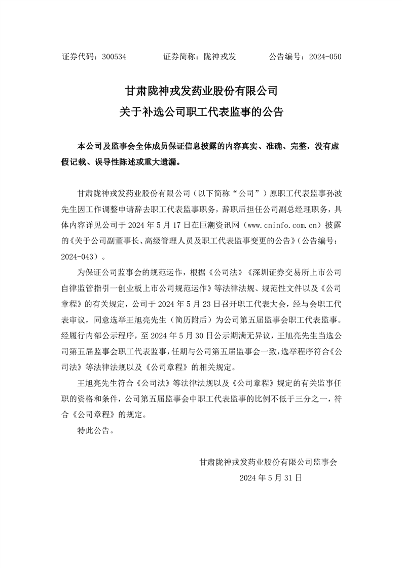 關(guān)于補(bǔ)選公司職工代表監(jiān)事的公告