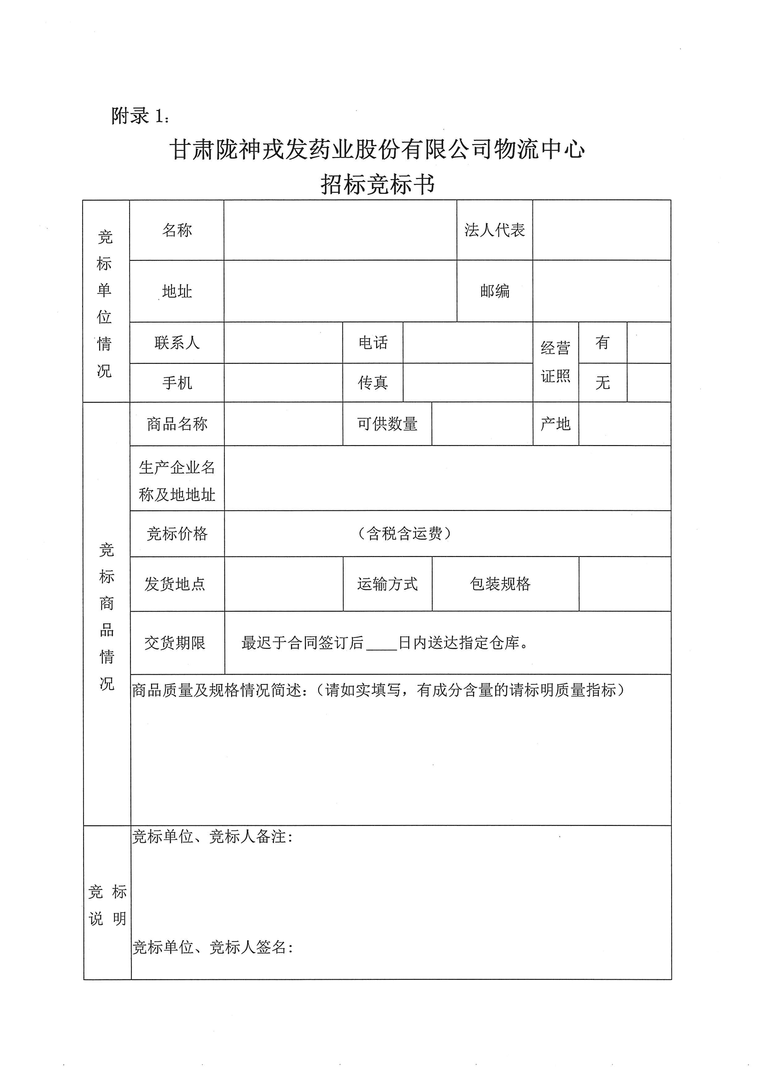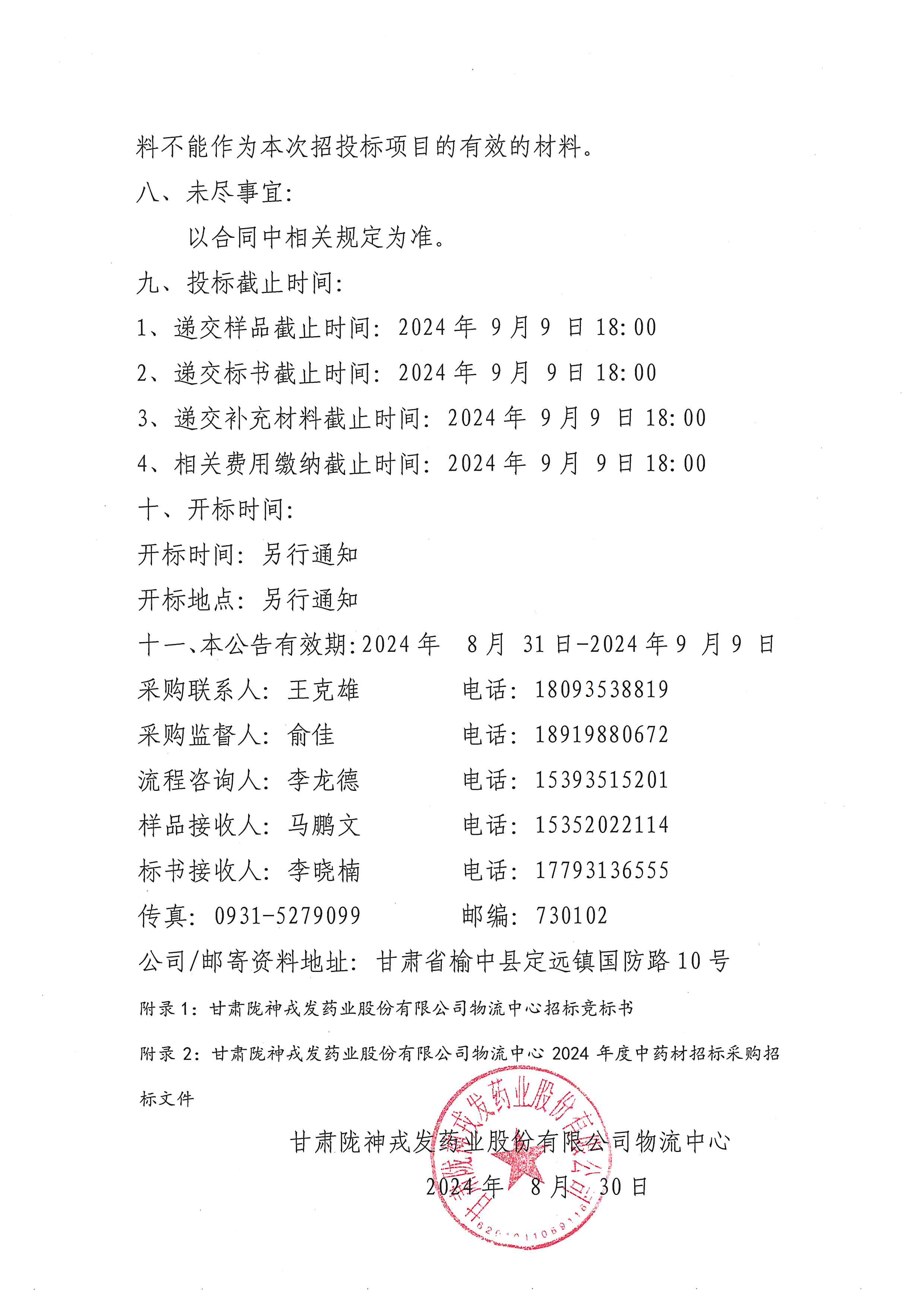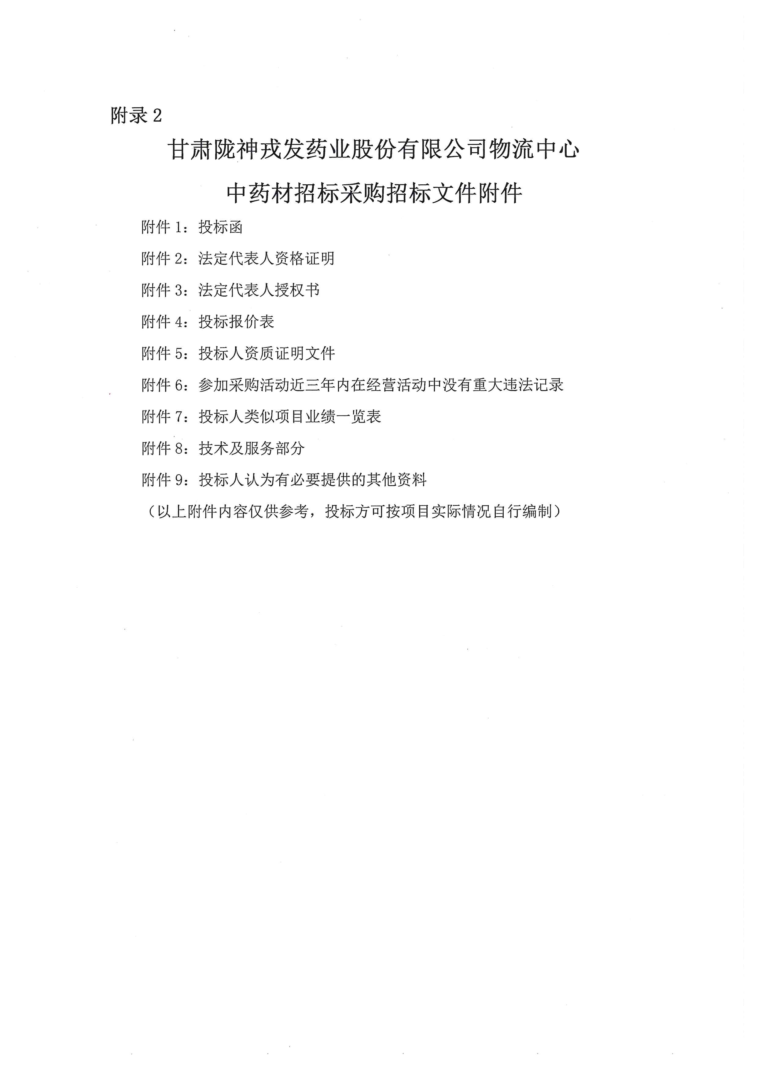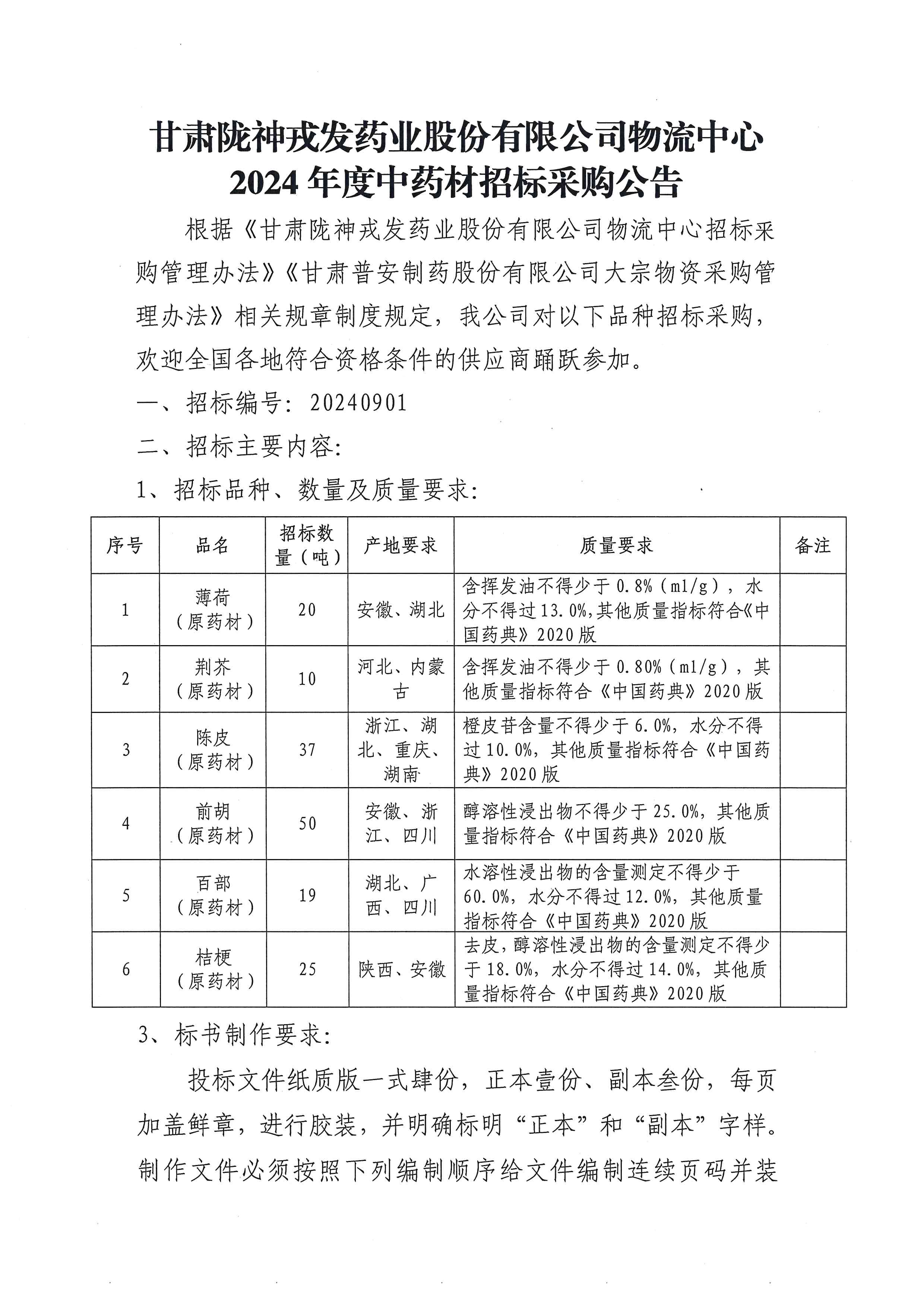 甘肅隴神戎發(fā)藥業(yè)股份有限公司物流中心2024年度中藥材招標(biāo)采購公告