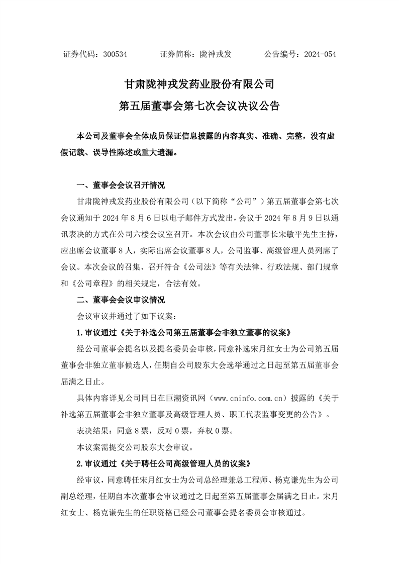 第五屆董事會(huì)第七次會(huì)議決議公告
