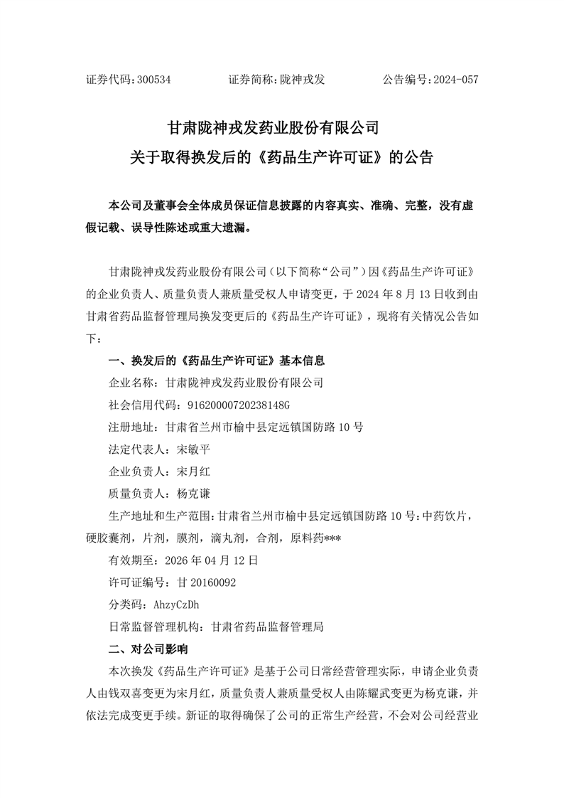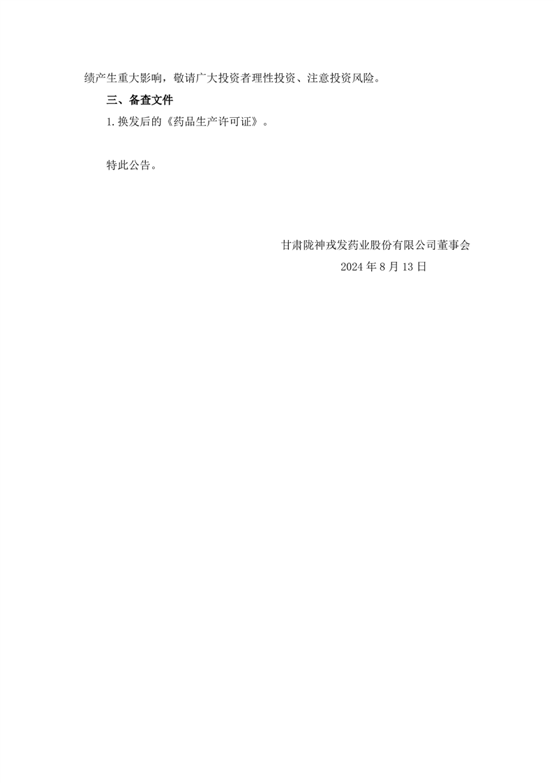 關(guān)于取得換發(fā)后的《藥品生產(chǎn)許可證》的公告