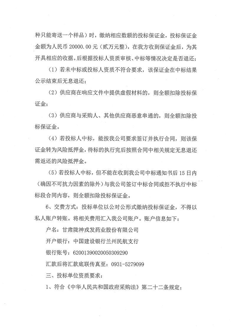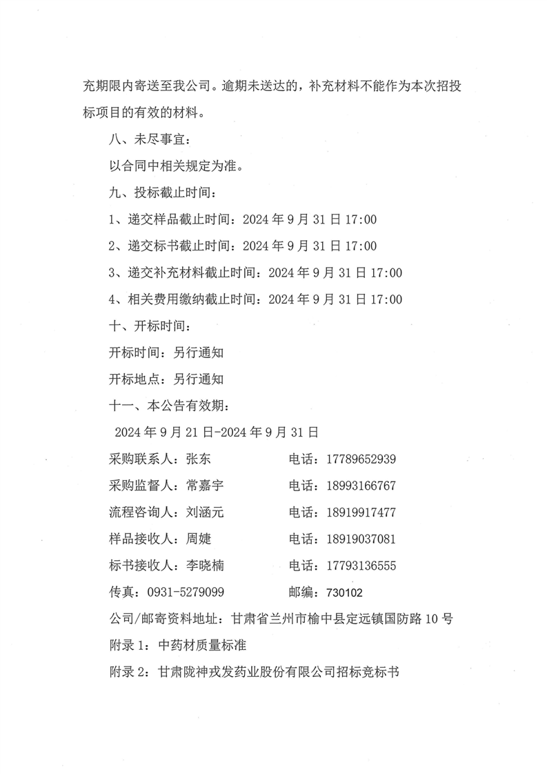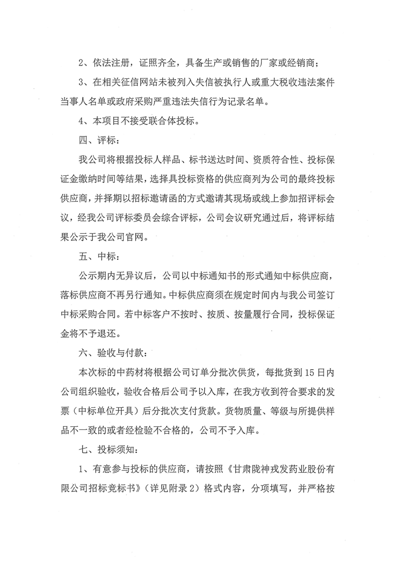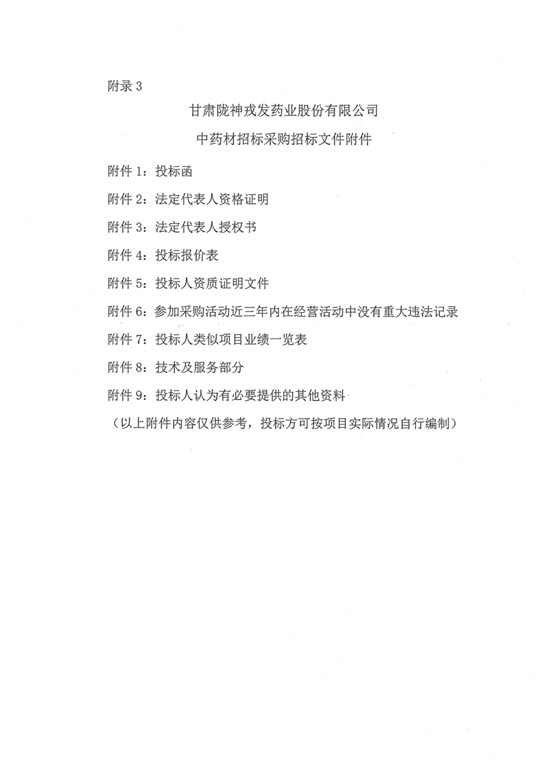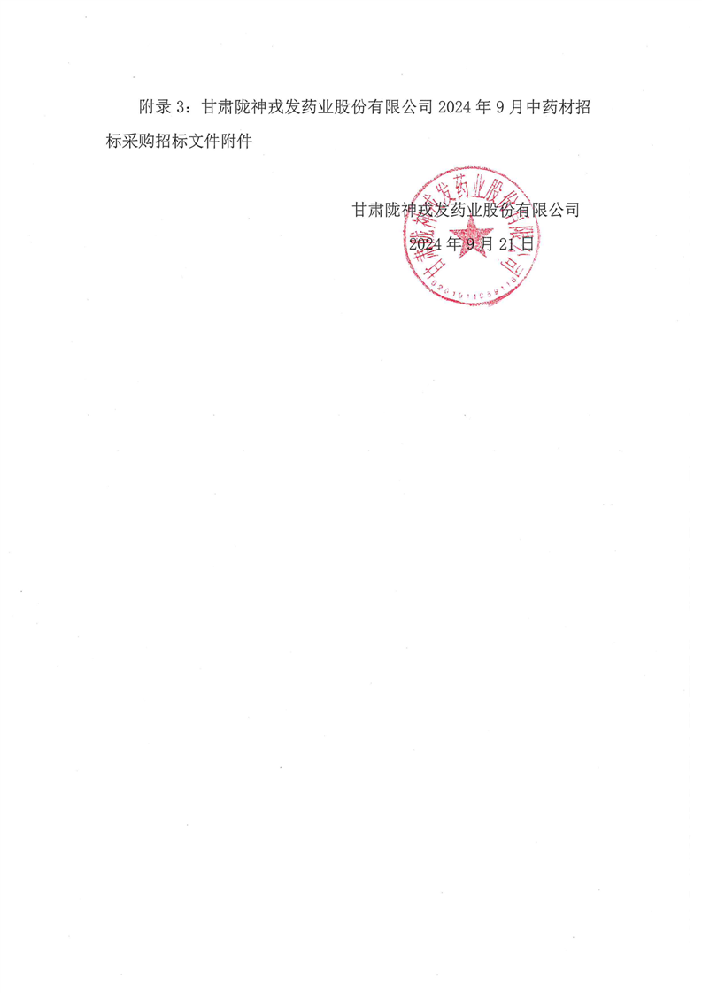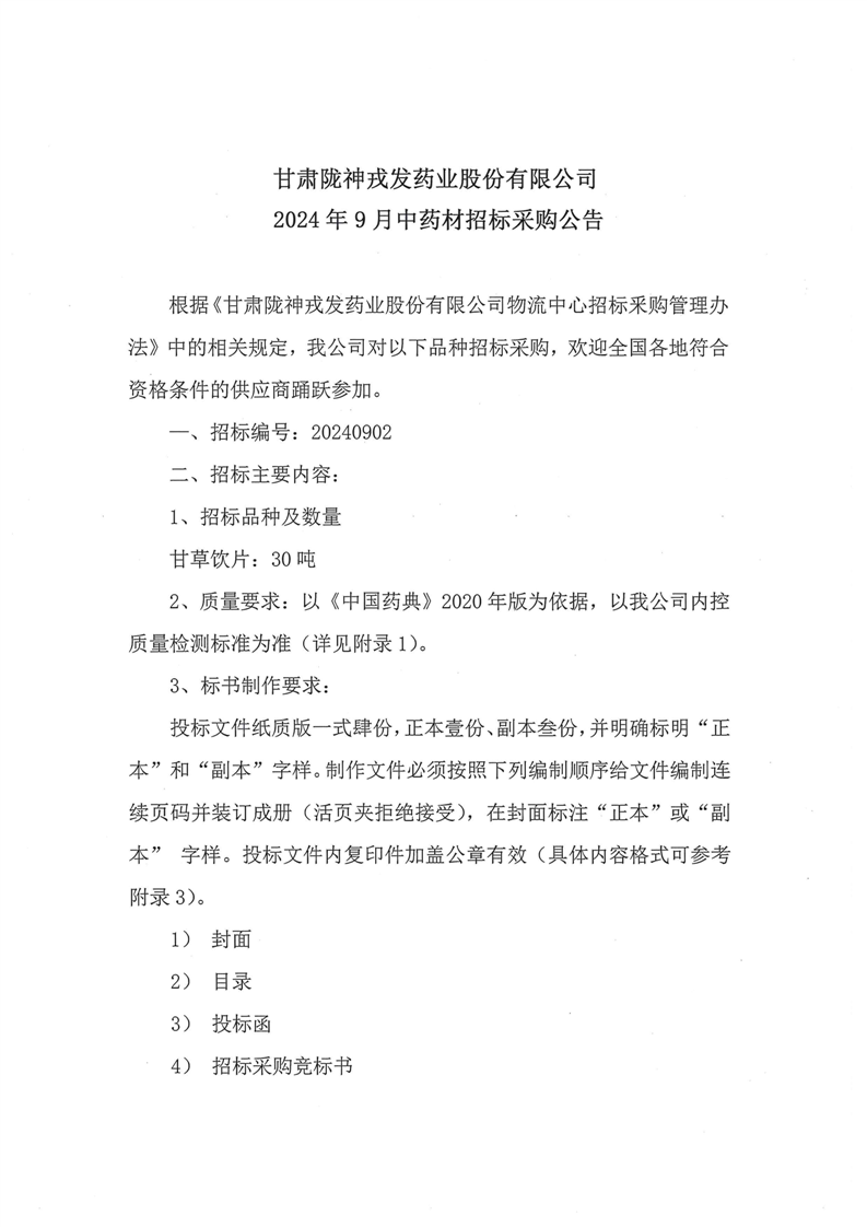 甘肅隴神戎發(fā)藥業(yè)股份有限公司2024年9月中藥材招標(biāo)采購(gòu)公告