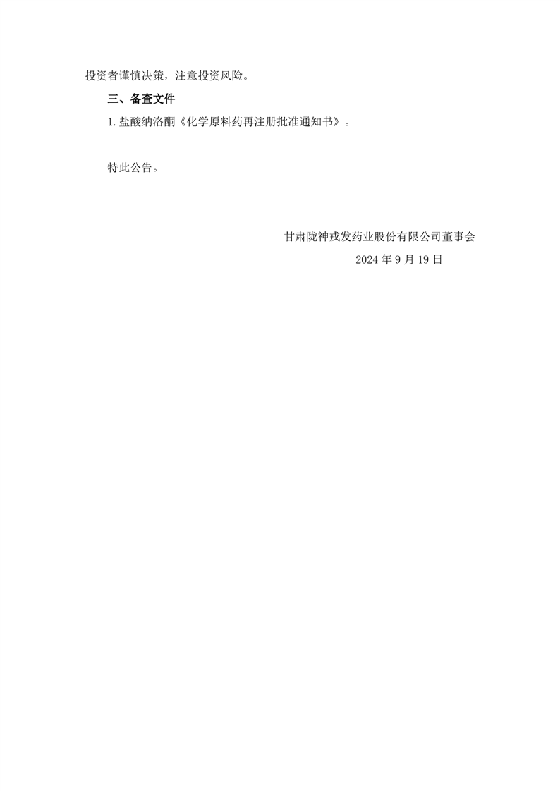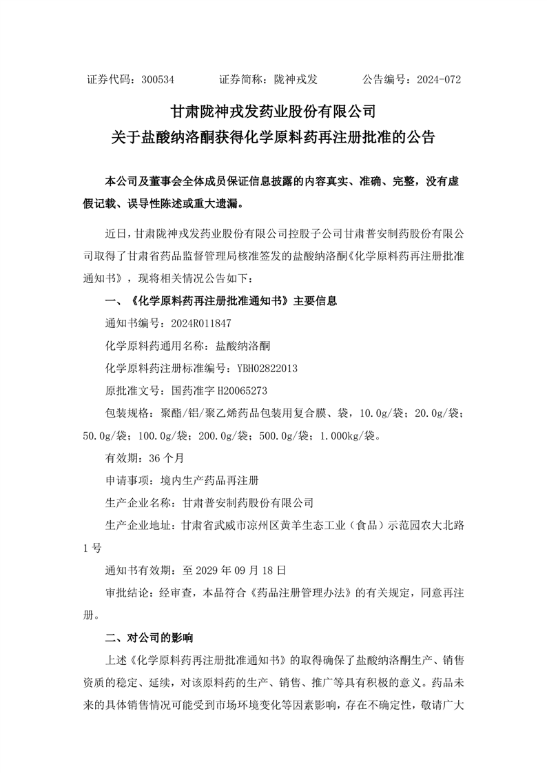 關(guān)于鹽酸納洛酮獲得化學(xué)原料藥再注冊批準(zhǔn)的公告