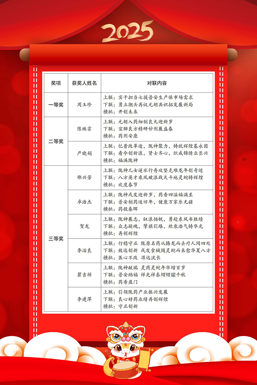 本次征集活動(dòng)共征集到春聯(lián)作品41幅,最終評審出一等獎(jiǎng)1名,二等獎(jiǎng)2名,三等獎(jiǎng)6名,參與獎(jiǎng)若干,F(xiàn)公布如下。