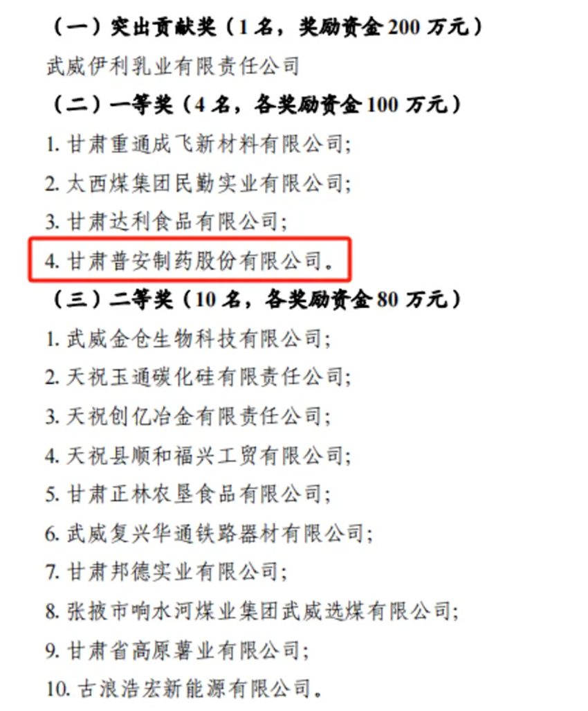 喜報 普安制藥榮獲“武威市高質(zhì)量穩(wěn)增長工業(yè)企業(yè)一等獎”