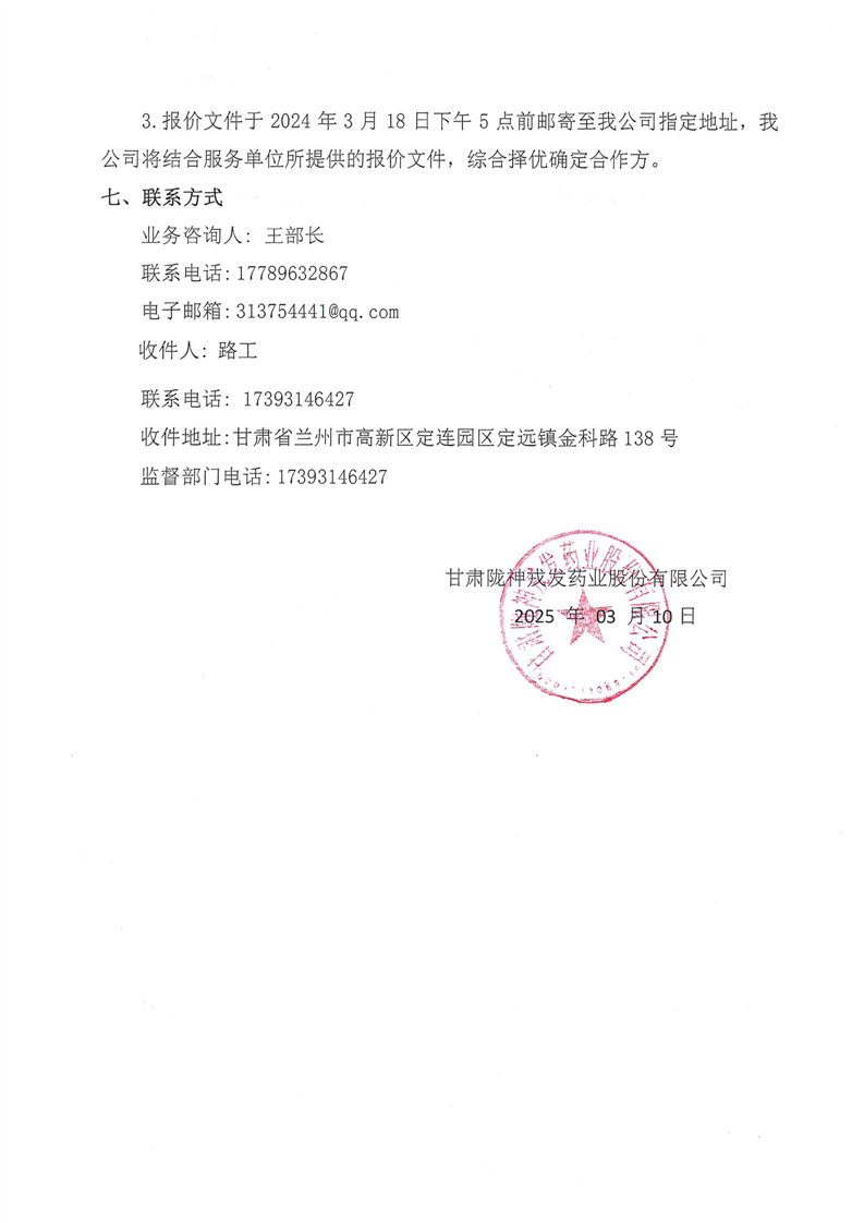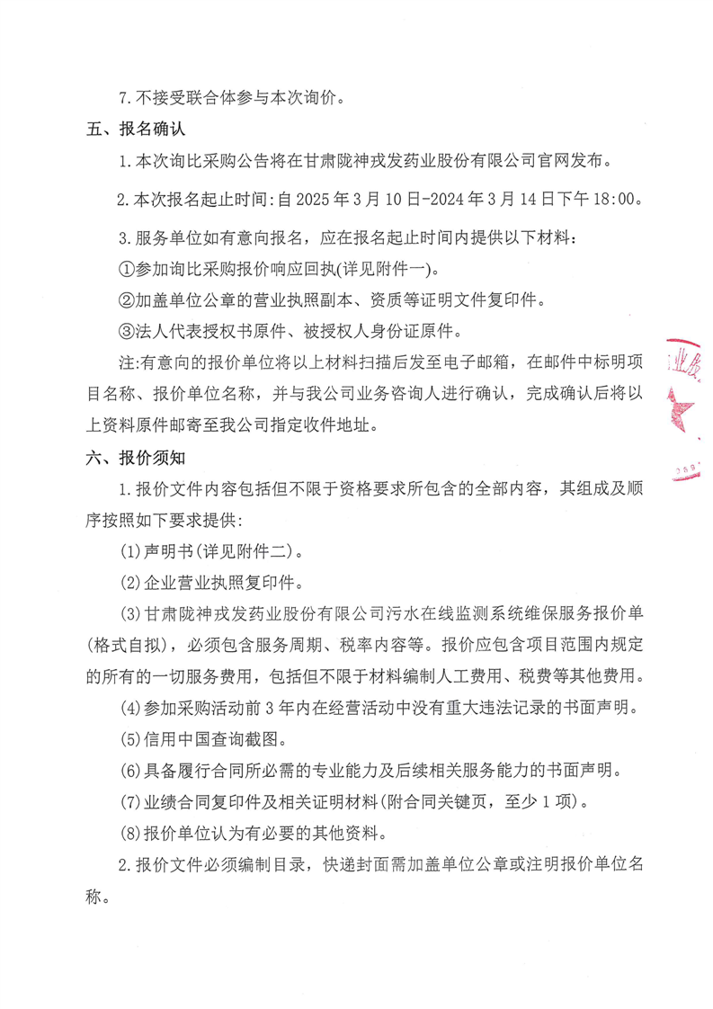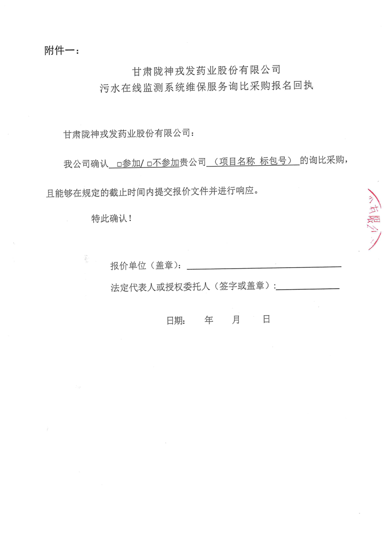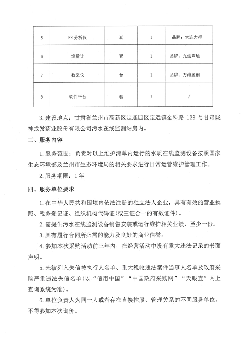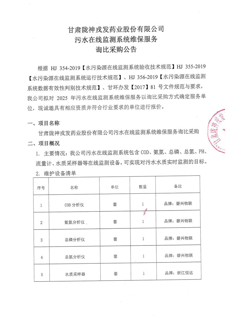 甘肅隴神戎發(fā)藥業(yè)股份有限公司污水在線監(jiān)測系統(tǒng)維保服務(wù)詢比采購公告