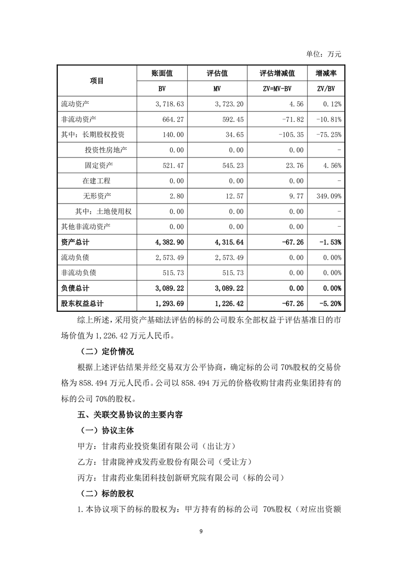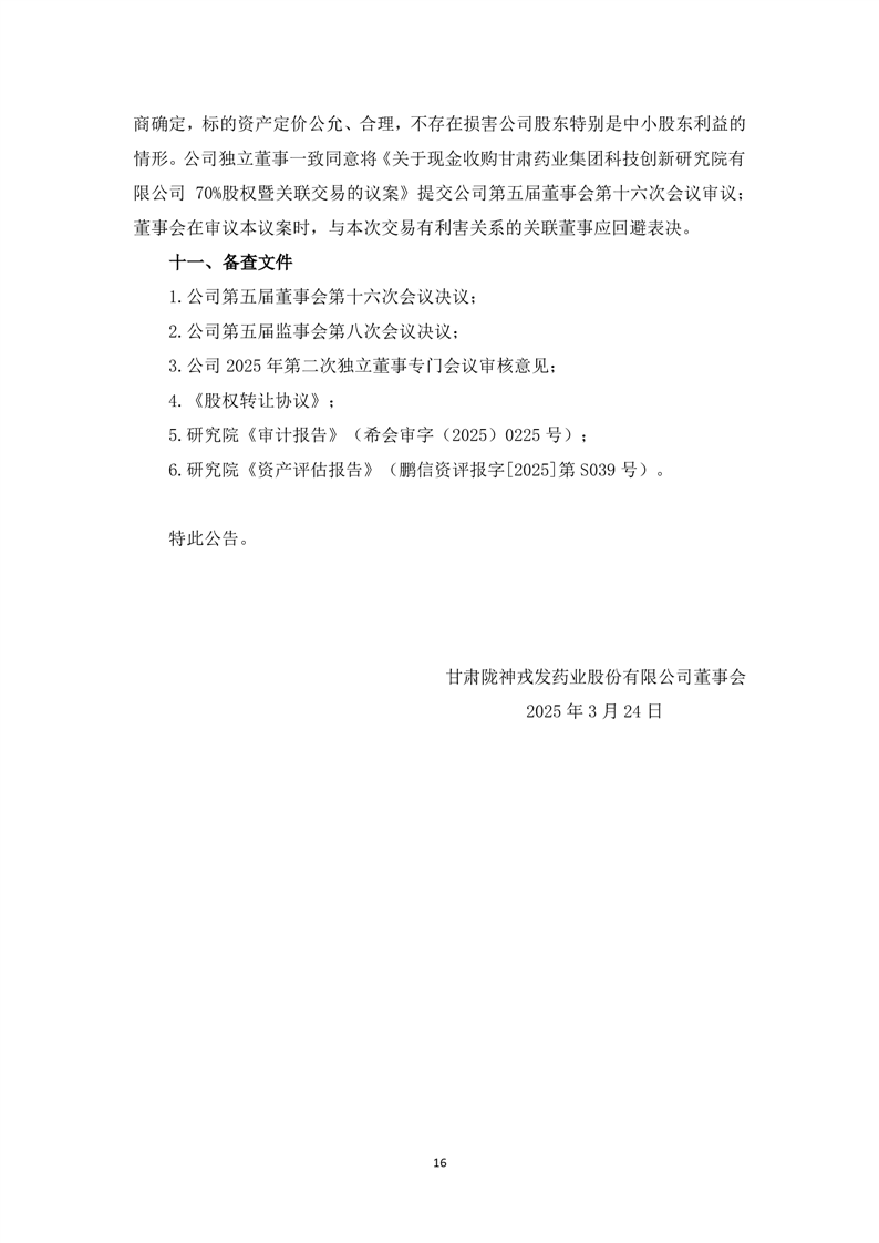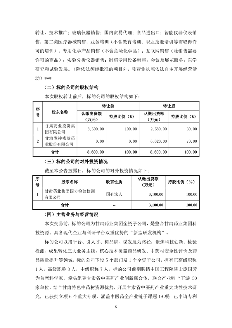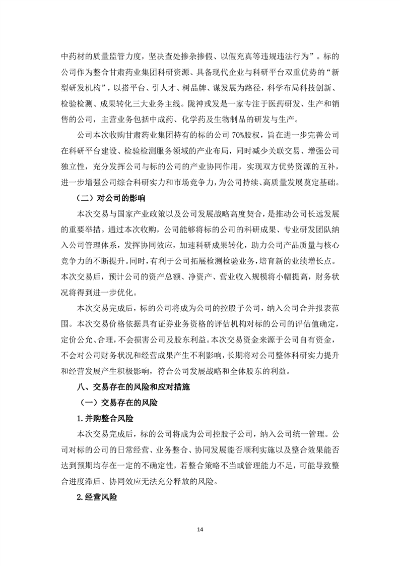 關(guān)于現(xiàn)金收購甘肅藥業(yè)集團科技創(chuàng)新研究院有限公司70%股權(quán)暨關(guān)聯(lián)交易的公告