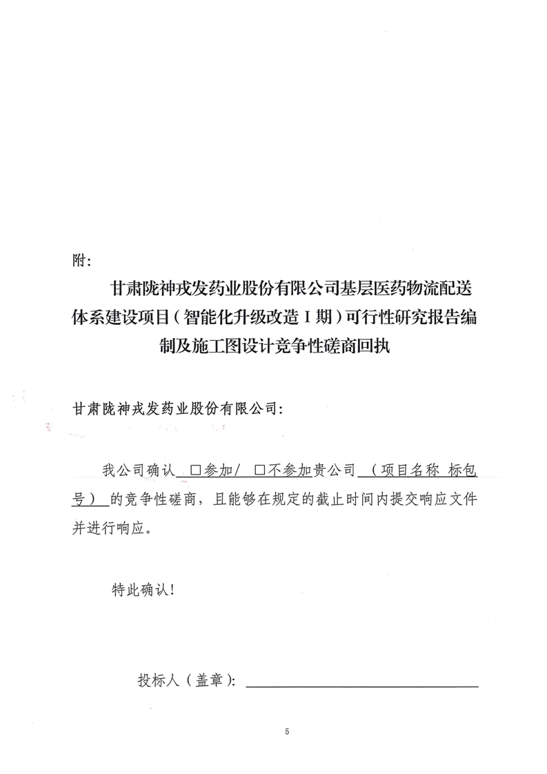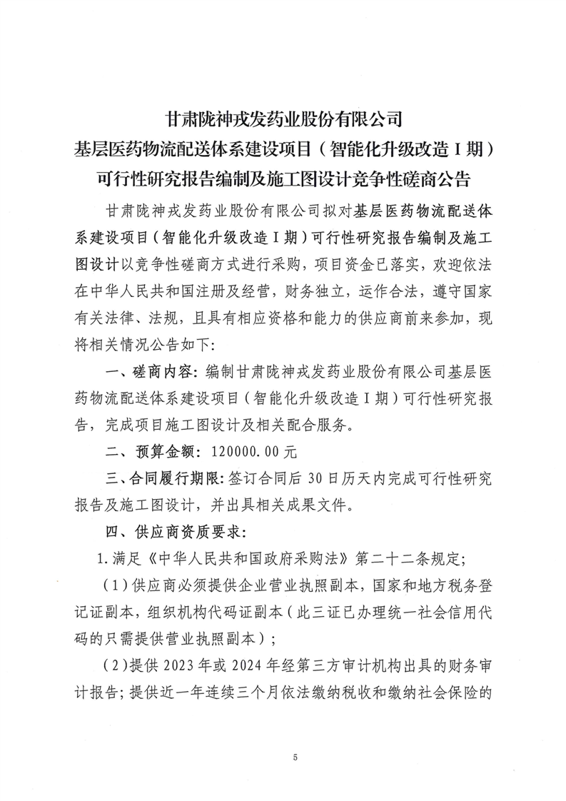 甘肅隴神戎發(fā)藥業(yè)股份有限公司基層醫(yī)藥物流配送體系建設(shè)項(xiàng)目(智能化升級(jí)改造Ⅰ期)可行性研究報(bào)告編制及施工圖設(shè)計(jì)競(jìng)爭(zhēng)性磋商公告