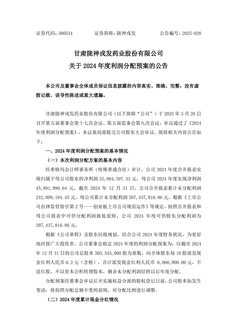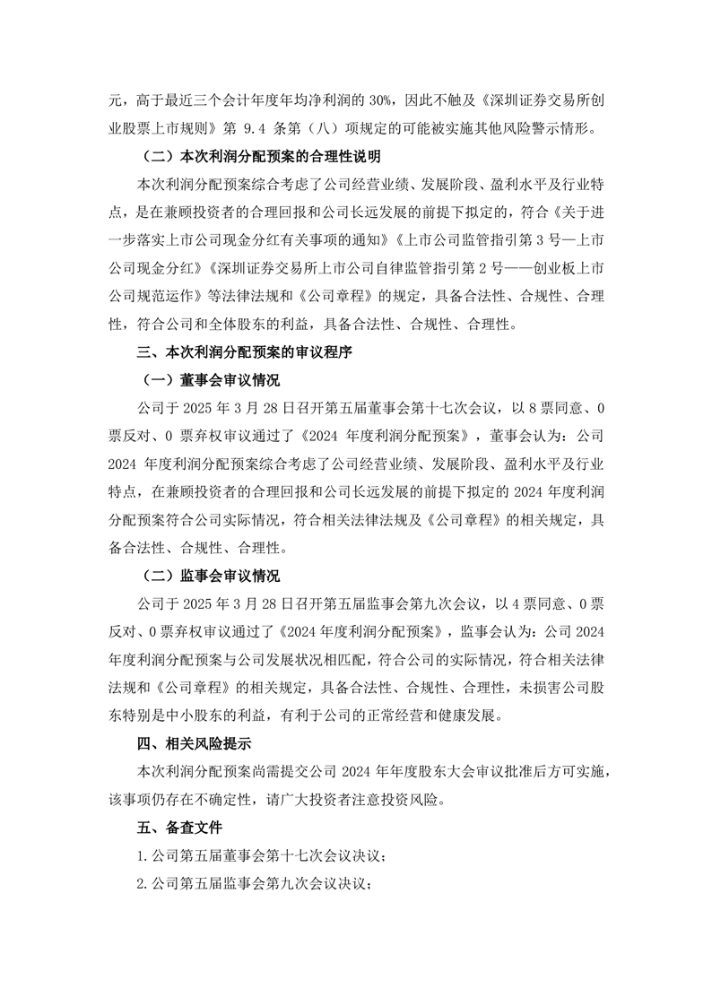 關(guān)于2024年度利潤分配預(yù)案的公告