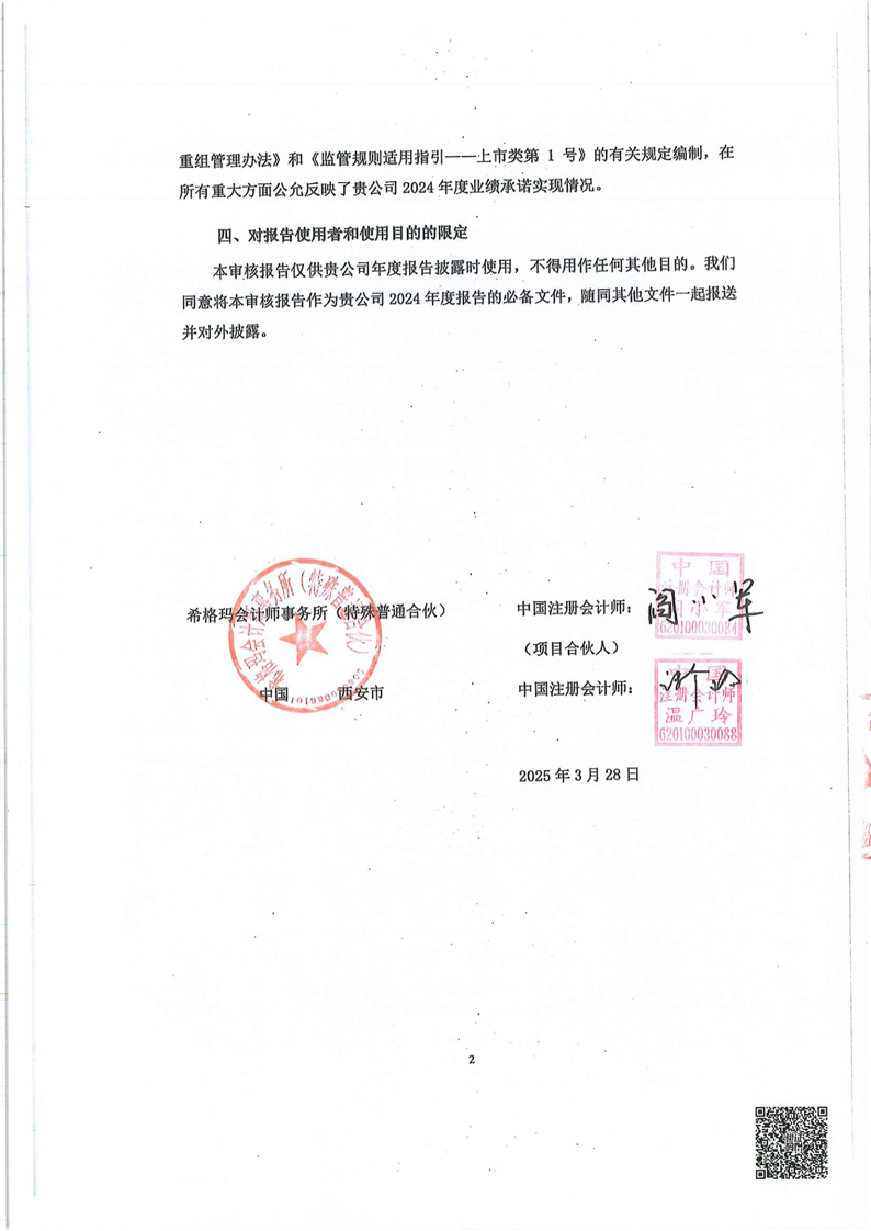 關(guān)于甘肅普安制藥股份有限公司業(yè)績承諾實現(xiàn)情況專項審核意見
